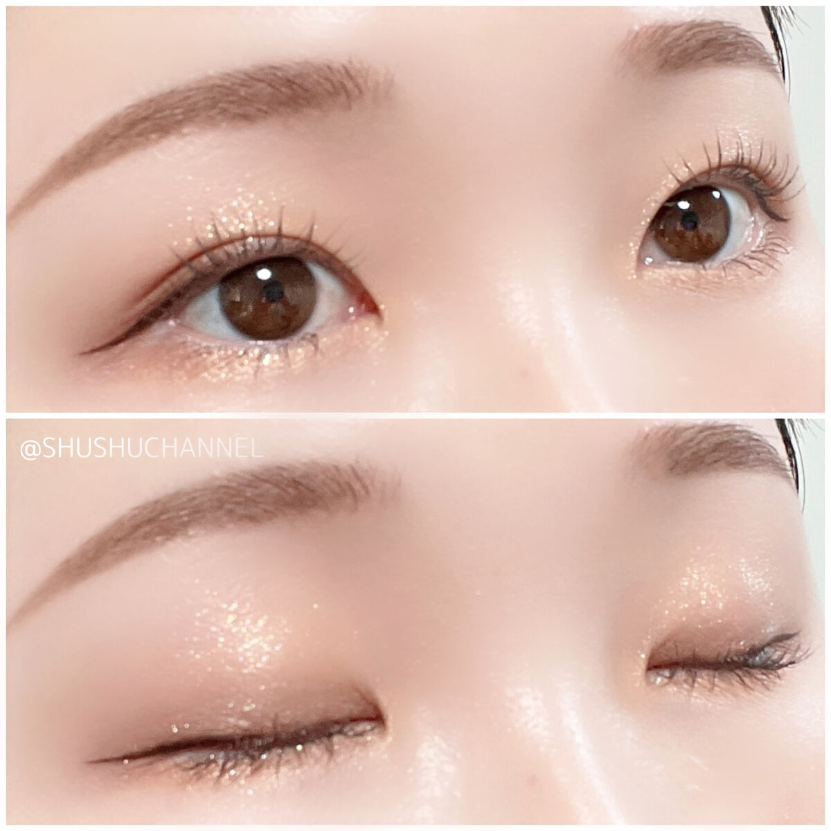 \艶めくさくら🌸メイク/#3CE#ブラッシュライターSLUK#FAVESBEAUTY#マイカラーデュオシャドウサマーラディアンス\\写真のようなアイメイク手順//①をアイホール、下瞼全体にブラシでふんわり塗る。②を①にグラデするように指先で伸...