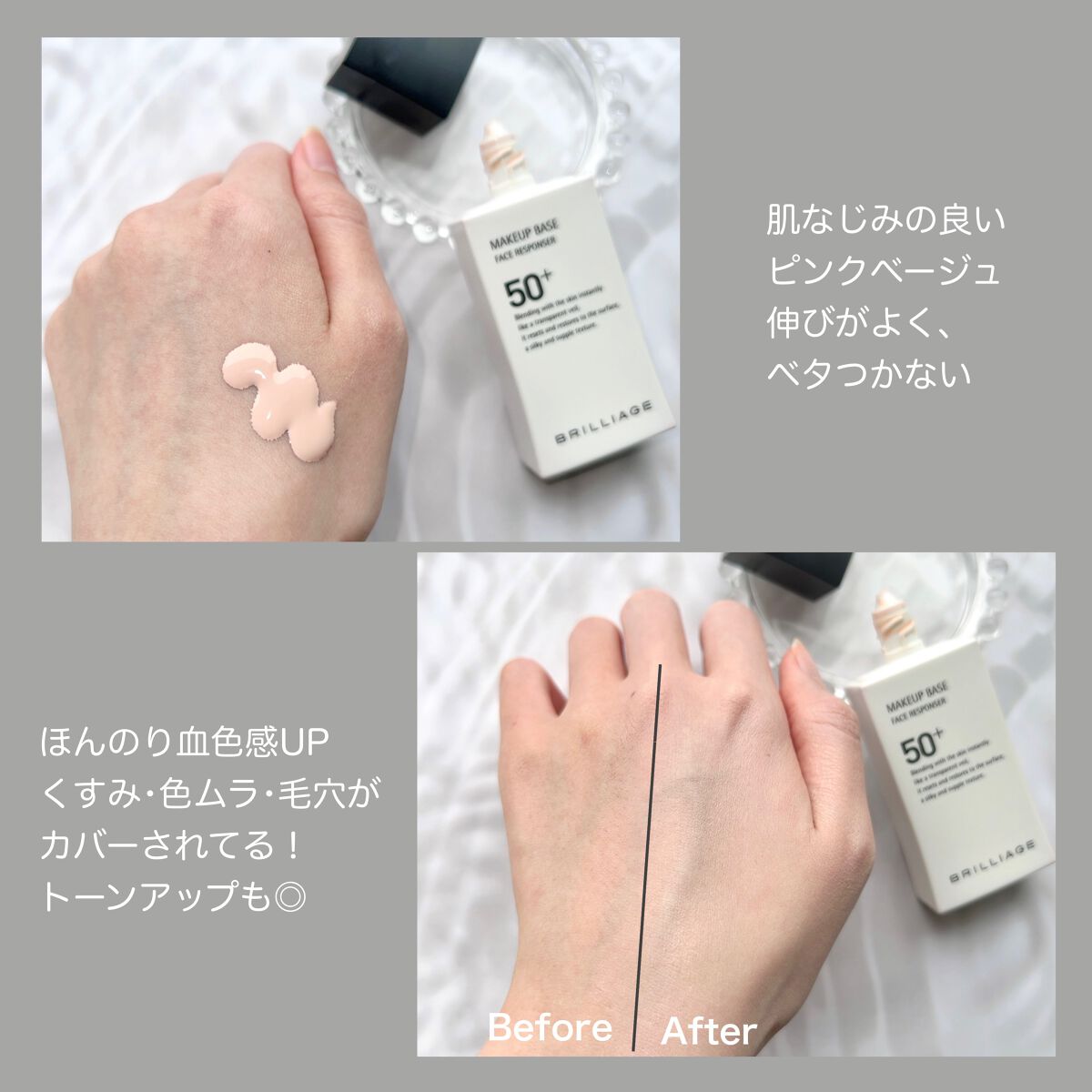 BRILLIAGEブリリアージュメイクアップベースフェイスレスポンサーを使いました。BRILLIAGEはヘアメイクアップアーティスト嶋田ちあきさんプロデュースのブランドです。色ムラ、凹凸などの肌悩みをひと塗りでカバーして透明感あふれるツヤ肌に...