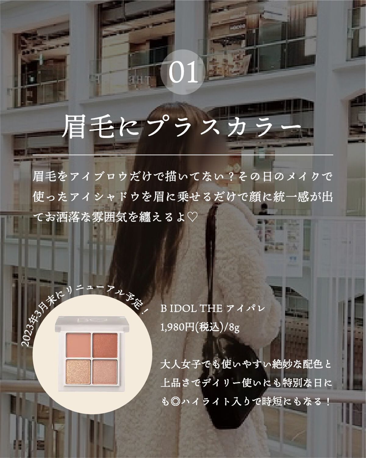 - 魔法の4色で印象的な目元に。 きらめきシャドウ×ハイライター あらゆるアイシャドウパレットを試してきた吉田朱里がたどり着いたのは“カラー3色+ハイライト”の4色パレット。 質感の異なるきらめきパウダーと、こだわりの配色で視線をひきつける印象的な目元へ。 立体感をつくるツヤ増しハイライター入り。 細部まで計算されたベストパレットで、一気にアイドル級の目力を演出します。 ※チップ・鏡はついておりません。 ※2023/3/31 リニューアル
