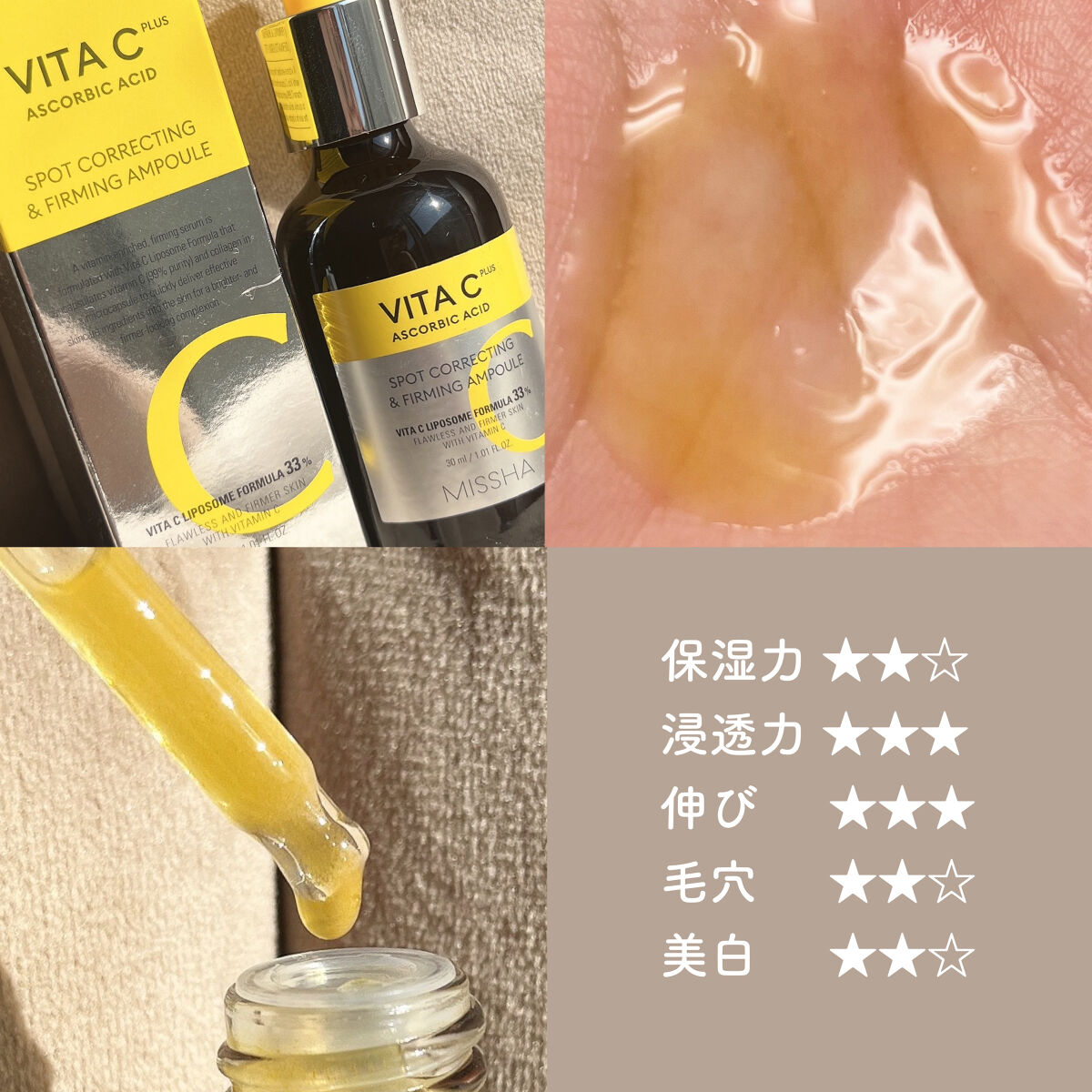 MISSHAミシャビタシープラス美容液日本処方30ml✼••┈┈••✼••┈┈••✼••┈┈••✼••┈┈••✼ビタミンC×コラーゲンを配合した美容液です🙋黄色のとろみある美容液です💛夏の紫外線対策として使用してます👍️半分以上使用してますが...