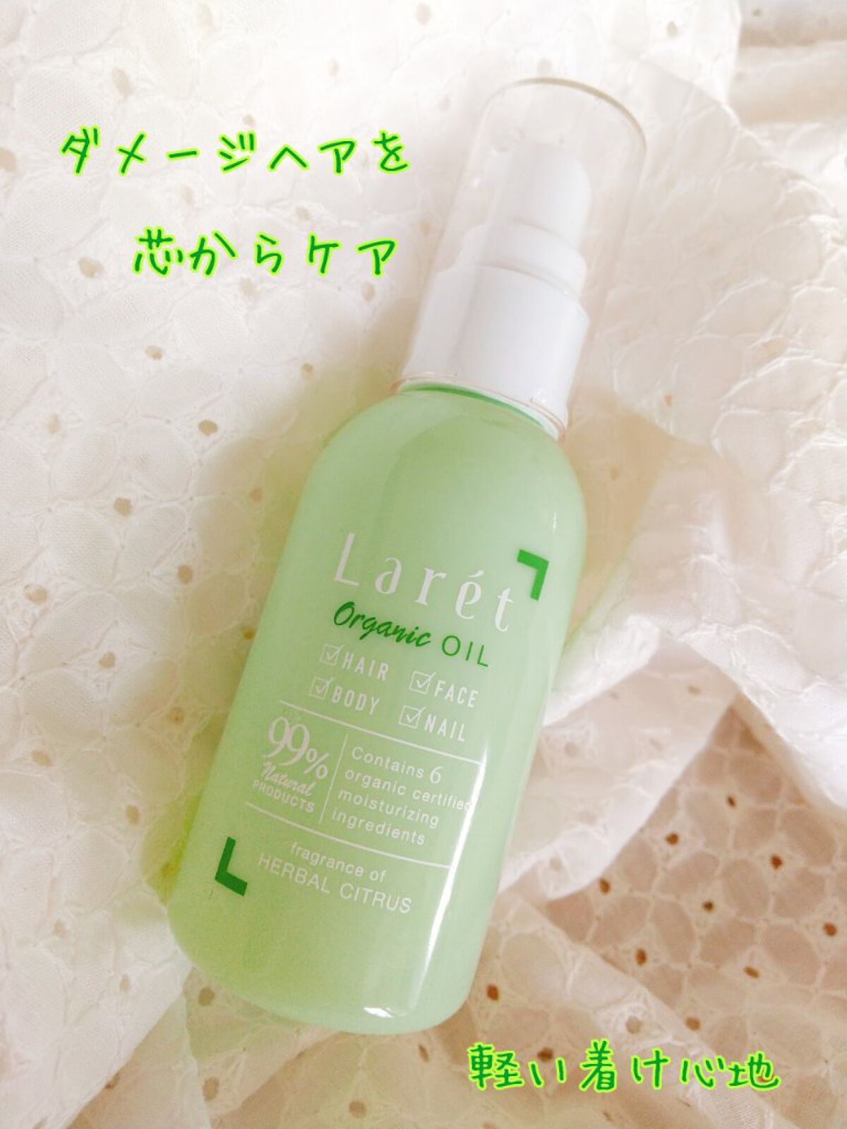 髪の毛の構成成分であるケラチンをオイル化した油溶性ケラチン「ヘアプロテイン」を配合したオイル。 天然由来成分99%配合。香りは天然由来にこだわった100%天然精油を使用しています。 オイルだけどサラサラしていて軽い使い心地です。ふんわりと柑橘系の香りが爽やかでお気に入り✨