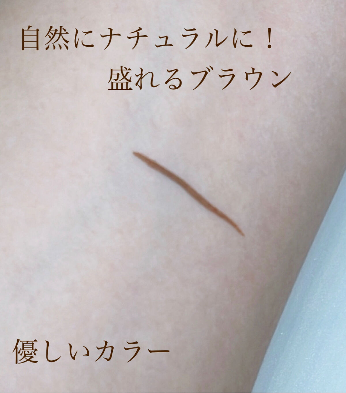 芯が硬めでしっかり固定されるので、アイラインが描きやすかったです! 色味も透け感があって、透明感が出るので、ナチュラルに盛れるなと思いました! 擦っても落ちにくいですが、正直、汗や水には少し弱めかなと感じました、、。