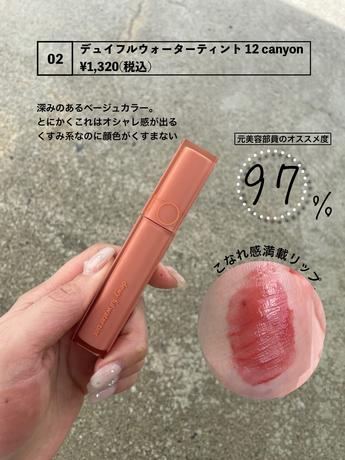 | 潤いが長続きします! 透け色ですが、重ねればパキッと仕上がるので調整しやすいティントだと思います!! | 詳細を見る |