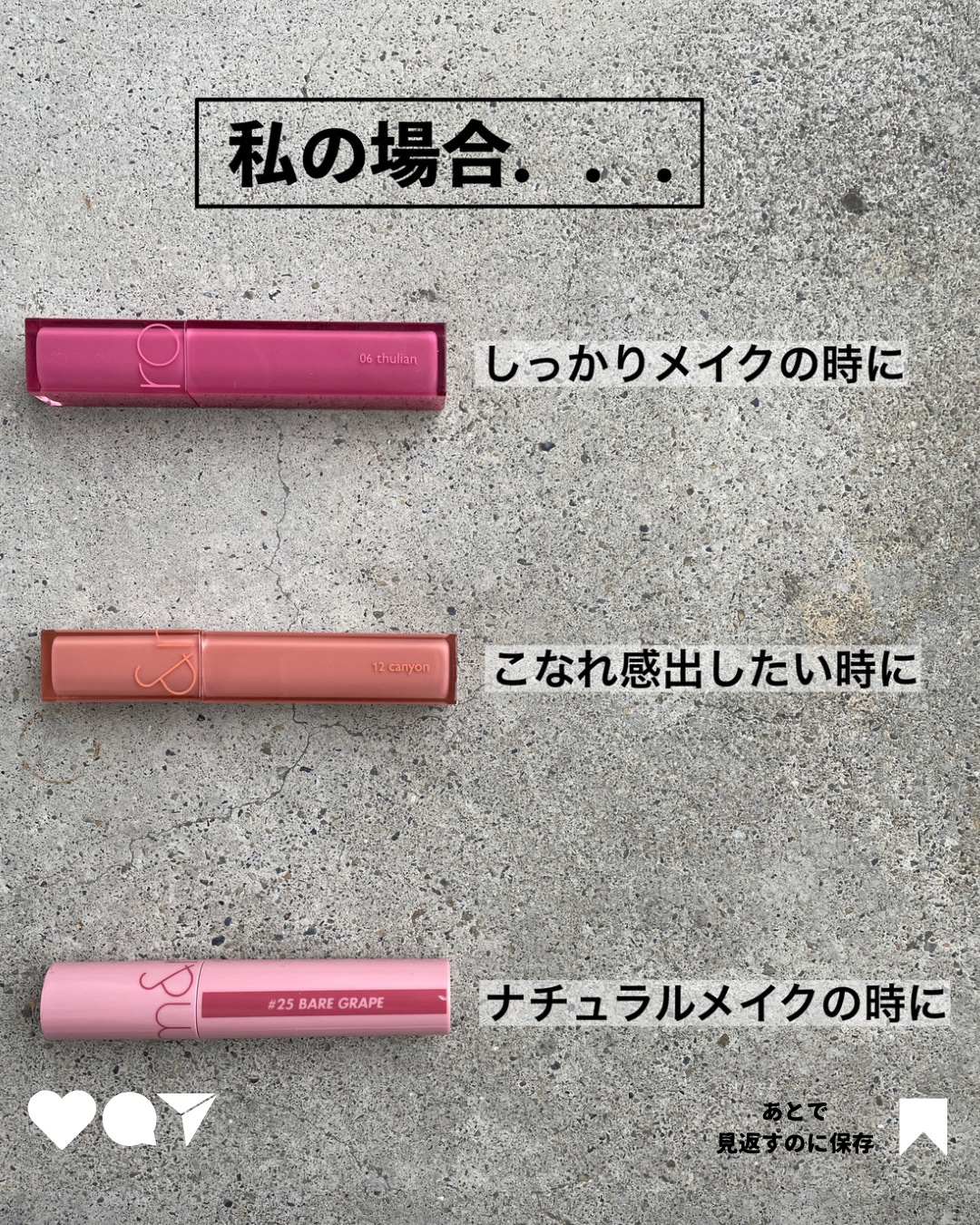 ブルベ夏おすすめカラー🎀 rom&nd ❤︎ ジューシーラスティングティント #06 FIGFIG ¥1,320(税込) デュイフルウォーターティント 06 thulian ¥1,320(税込) グラッシーボムティント BR02 ローズビーン ¥780(税込)