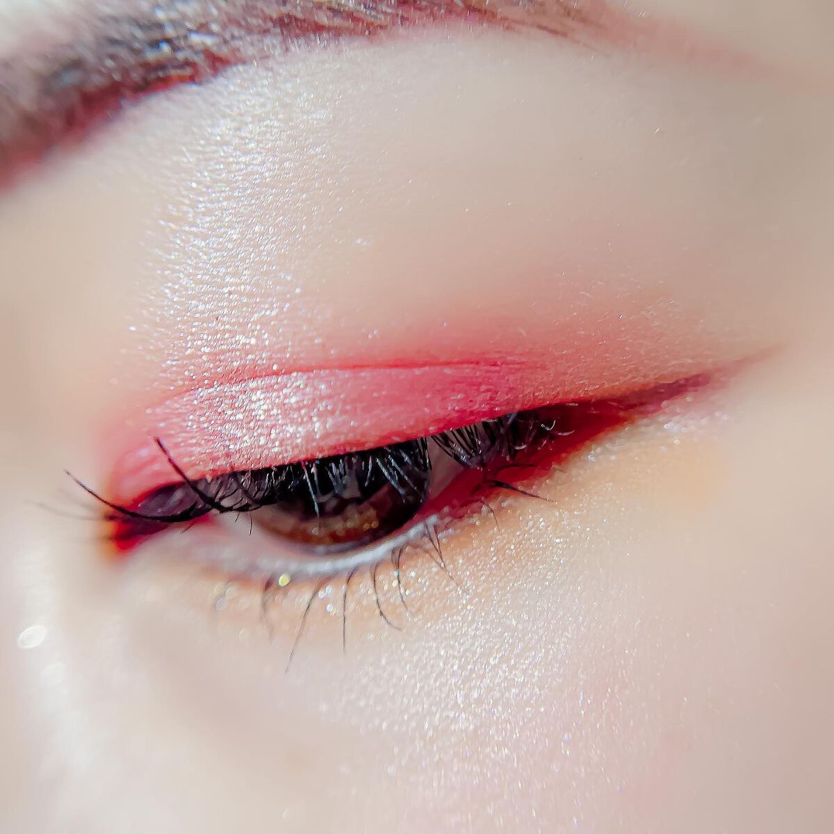 ピンクにグレージュも良いですね👌💗 今日は可愛らしい感じにしてみました💕 上下瞼黒目〜目頭側にラメを塗ってキラキラさせております🤩 目尻はマットのピンクを濃いめに重ねて💗 グレージュのアイライナーと相性◎