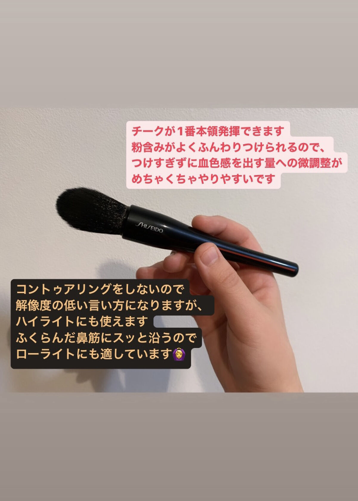 SHISEIDOMARUFUDEマルチフェイスブラシ【チークいれるの苦手な人にも👌】見た目がもう美しいブラシ先がすぼまったブラシでチークに最適なサイズ狙ったところにチークをのせれるので失敗がなくなった🤗リキッド、クリーム、パウダーに使用可能熊...