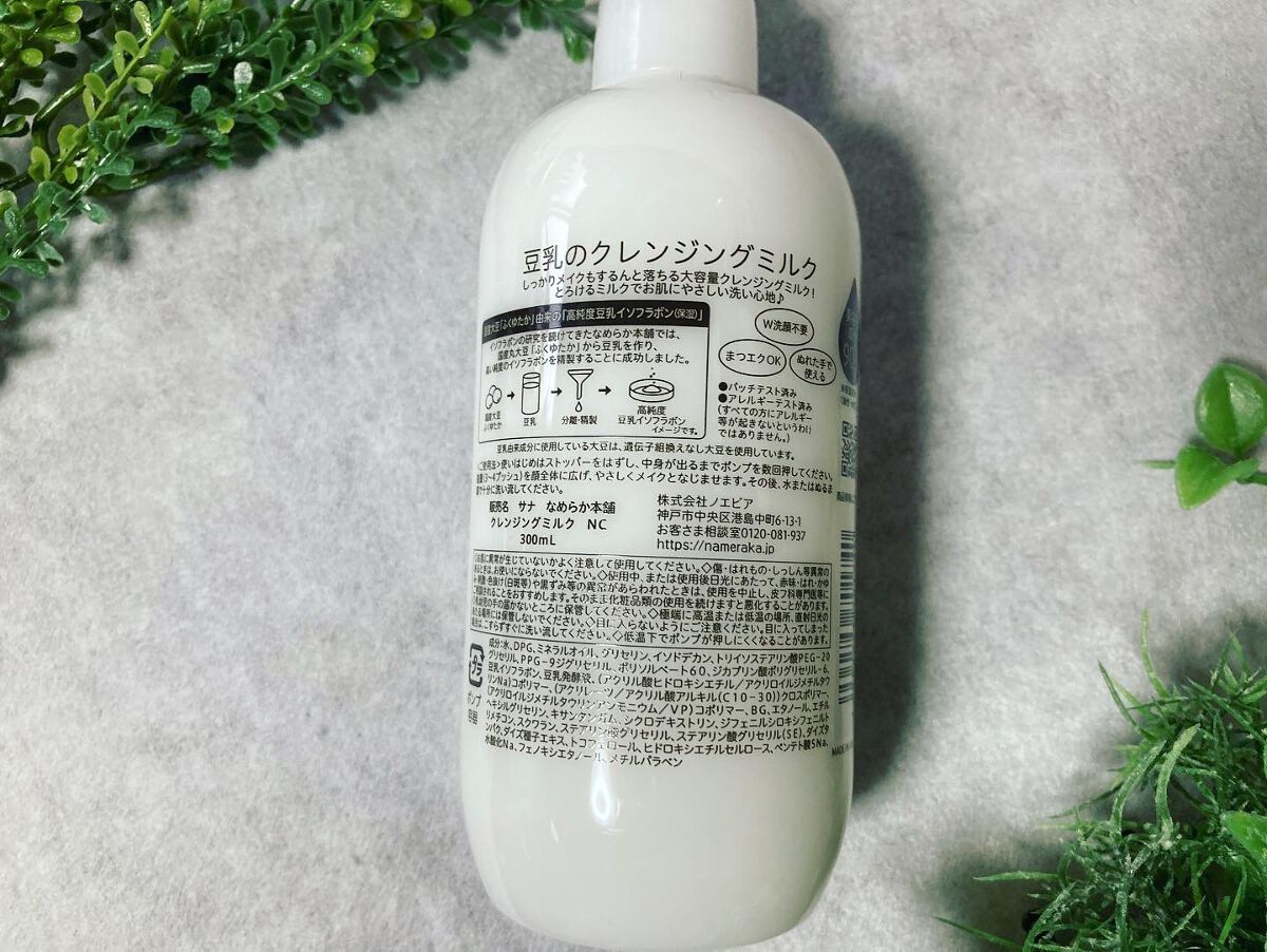 - <クレンジングミルク NC> 水、DPG、ミネラルオイル、グリセリン、イソドデカン、トリイソステアリン酸PEG-20グリセリル、PPG-9ジグリセリル、ポリソルベート60、ジカプリン酸ポリグリセリル-6、豆乳イソフラボン、豆乳発酵液、(アクリル酸ヒドロキシエチル/アクリロイルジメチルタウリンNa)コポリマー、(アクリレーツ/アクリル酸アルキル(C10-30))クロスポリマー、(アクリロイルジメチルタウリンアンモニウム/VP)コポリマー、BG、エタノール、エチルヘキシルグリセリン、キサンタンガム、シクロデキストリン、ジフェニルシロキシフェニルトリメチコン、スクワラン、ステアリン酸グリセリル、ステアリン酸グリセリル(SE)、ダイズタンパク、ダイズ種子エキス、トコフェロール、ヒドロキシエチルセルロース、ペンテト酸5Na、水酸化Na、フェノキシエタノール、メチルパラベン <クレンジングミルク【旧】> 水、DPG、ミネラルオイル、グリセリン、イソドデカン、トリイソステアリン酸PEG-20グリセリル、PPG-9ジグリセリル、ポリソルベート60、ジカプリン酸ポリグリセリル-6、豆乳イソフラボン、豆乳発酵液、(アクリル酸ヒドロキシエチル/アクリロイルジメチルタウリンNa)コポリマー、(アクリレーツ/アクリル酸アルキル(C10-30))クロスポリマー、(アクリロイルジメチルタウリンアンモニウム/VP)コポリマー、BG、エタノール、エチルヘキシルグリセリン、キサンタンガム、シクロデキストリン、ジフェニルシロキシフェニルトリメチコン、スクワラン、ステアリン酸グリセリル、ステアリン酸グリセリル(SE)、ダイズタンパク、ダイズ種子エキス、トコフェロール、ヒドロキシエチルセルロース、ペンテト酸5Na、水酸化Na、フェノキシエタノール、メチルパラベン