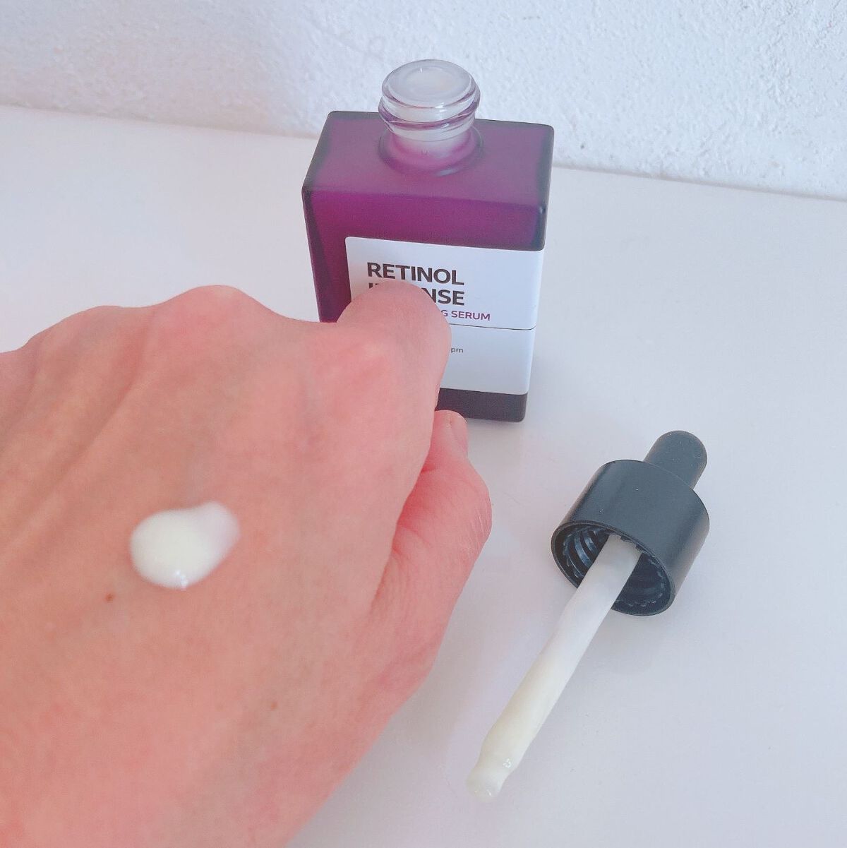 お肌のキメやトラブルケア、毛穴目立ち等にアプローチしてくれるそう! クリーム色のとろみが心地よいテクスチャー! みずみずしくお肌になじみ、しっとりとした使用感🍀 レチノール初心者にもおすすめとのことなので、レチノールコスメに興味がある方はぜひ試してみてください🌟
