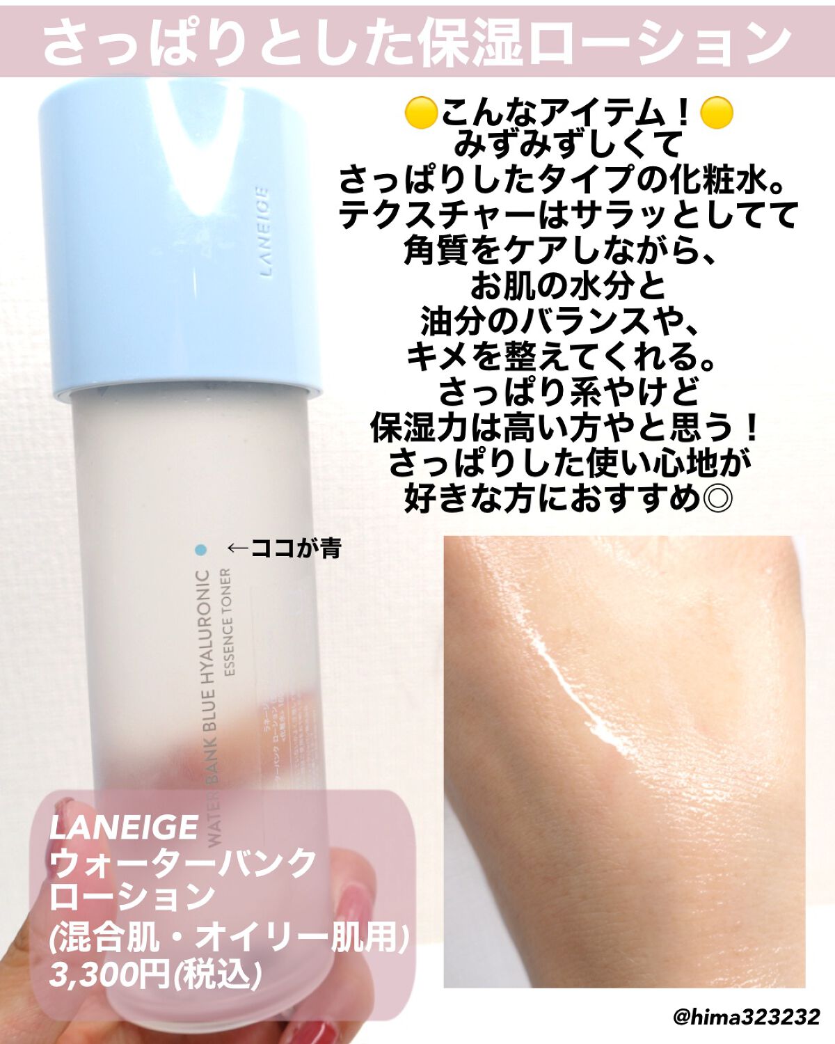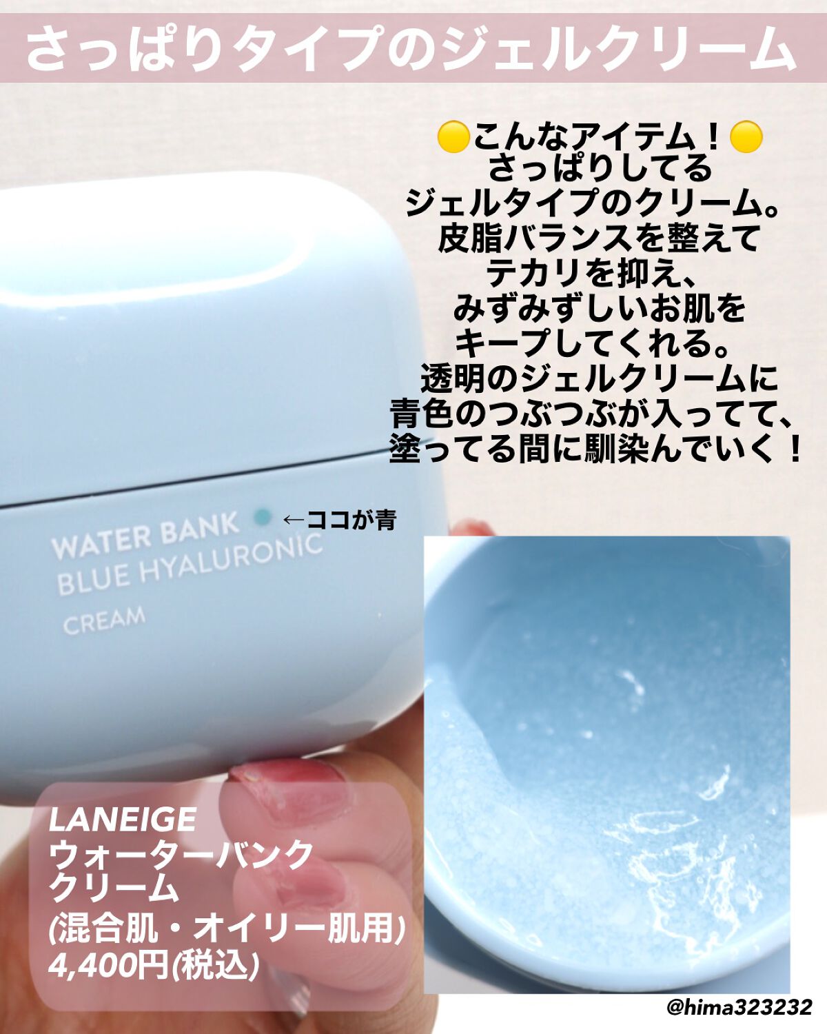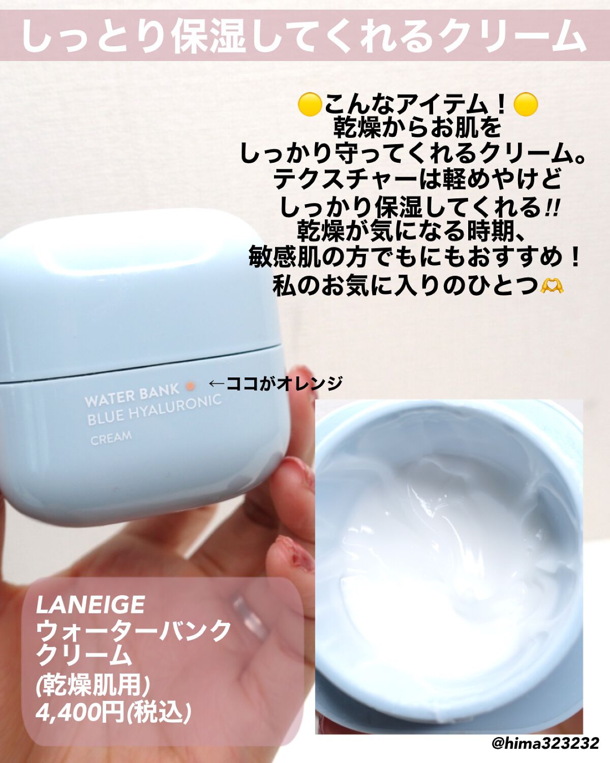 ウォーターバンクシリーズから今回お試ししたのは ころんと可愛いパケが目を引く 乾燥肌さん向けの保湿クリーム。 通常のヒアルロン酸よりも高い保湿効果の 独自成分ブルーヒアルロン酸を配合! しっとりめのテクスチャーは重くなくてよく伸びる! 乾燥肌用といえどベタつきすぎないのも◎ 朝のメイク前でも使いやすい✨ パール2粒大を使用して約1~1.5ヶ月分なんだそう。 こちらはLIPS様を通して LANEIGE様よりいただきました✨ 素敵なお品物をありがとうございました♡