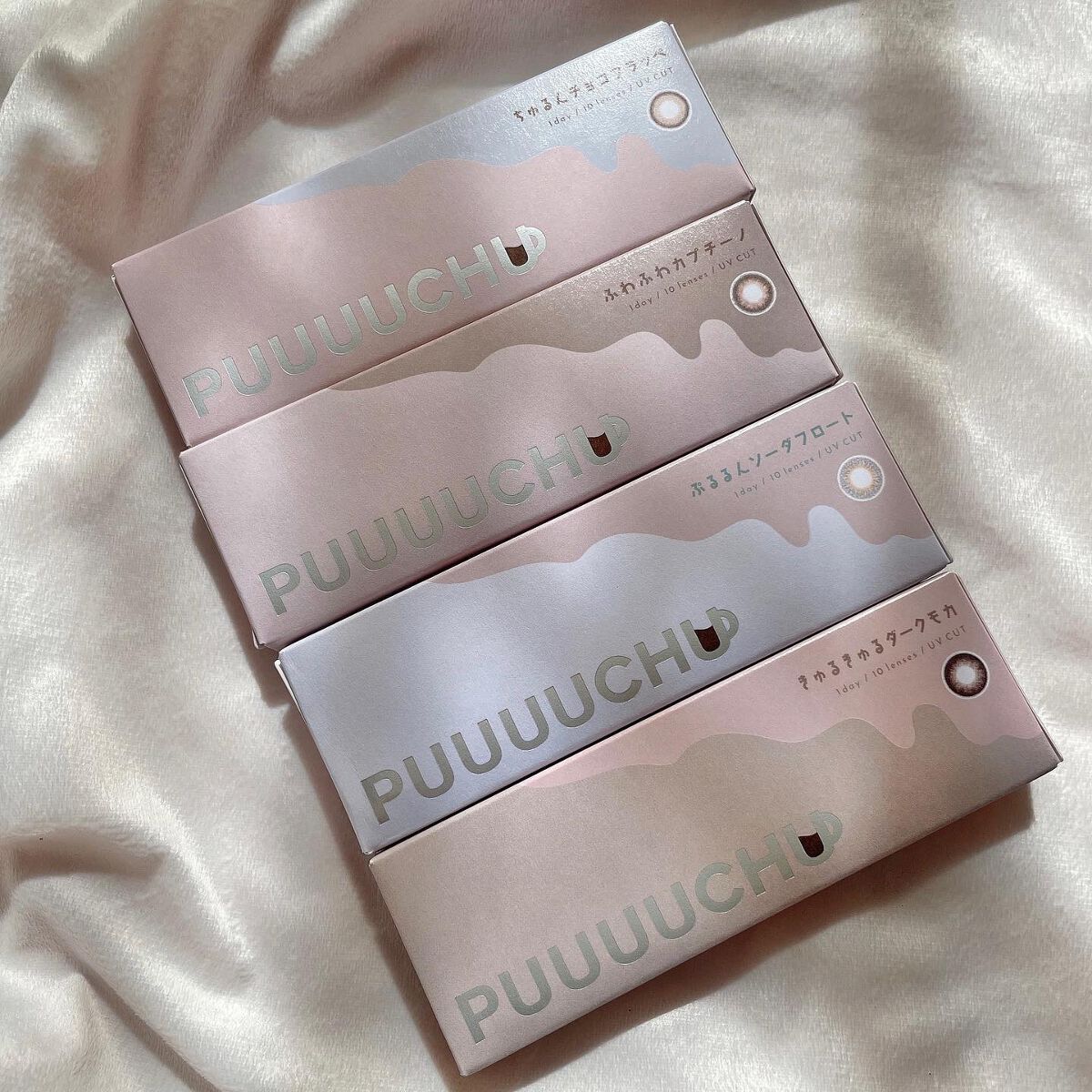 - ※2023年7月よりパッケージ底面カラー名表記部分、順次リニューアル。尚、これに係る商品の返品・交換等は承っておりません。 女の子の「かわいい」がぜーんぶ叶うよくばりなラインナップ 絶対ばぶフェイス♡ちゅるんチョコフラッペ DIA14.2mm/着色直径13.5mm 細フチ×ピュアベージュ ピュアちゅるんレンズで守りたくなっちゃうような甘めの瞳に 王道人類モテ♡ふわふわカプチーノ DIA14.5mm/着色直径13.7mm ぽんわりフチ×ふわブラウン フチふんわりシフォンブラウンレンズで優し気な瞳に 超絶盛れ地雷女子♡きゅるきゅるダークモカ DIA14.5mm/着色直径13.8mm 溶け込みグラデ×きゅるんブラック くっきり暗めカラーレンズでお人形さんみたいにくっきりとした印象の瞳に 韓国系クール美人♡ぷるるんソーダフロート DIA14.2mm/着色直径13.2mm うるうる質感×透明感ブルー うるうる透明感ブルーグレーレンズでクールビューティーな瞳に 商品名 :PUUUUCHU(プーチュ) 価格 :1,650円 税込(10枚入り) カラー :全4色 レンズ :BC8.6mm DIA14.2mm/14.5mm UVカット 含水率 :38% 使用期間 :終日装用、一日交換 度数 :0.00D(度なし),-0.50D~-6.00D(0.25D刻み),-6.50D~-10.00D(0.50D刻み) 販売名 :ワンデーツッティアルファ 承認番号 :22400BZX00427000 カラーコンタクトレンズの不適正使用による眼障害の危険性等などがあります。 ●コンタクトレンズは高度管理医療機器です。不十分な洗浄・消毒など不適切なケアや、長時間・交換期間を超えた装用により、アレルギー性結膜炎、角膜感染症、角膜潰瘍等の重篤な眼障害が発生する危険性があります ●ご使用前に取扱説明書を確認してください 使用上の留意事項 ●眼科医院等を受診してからお求めください ●眼に異常を感じたら直ちにレンズ使用を中止し、お近くの眼科等で診察を受けてください ●医師の指示にしたがってご使用ください ●コンタクトレンズを装用する場合、自覚症状がなくても、眼科医院等での定期検査を受けてください ●レンズに不具合がある場合は使用しないでください