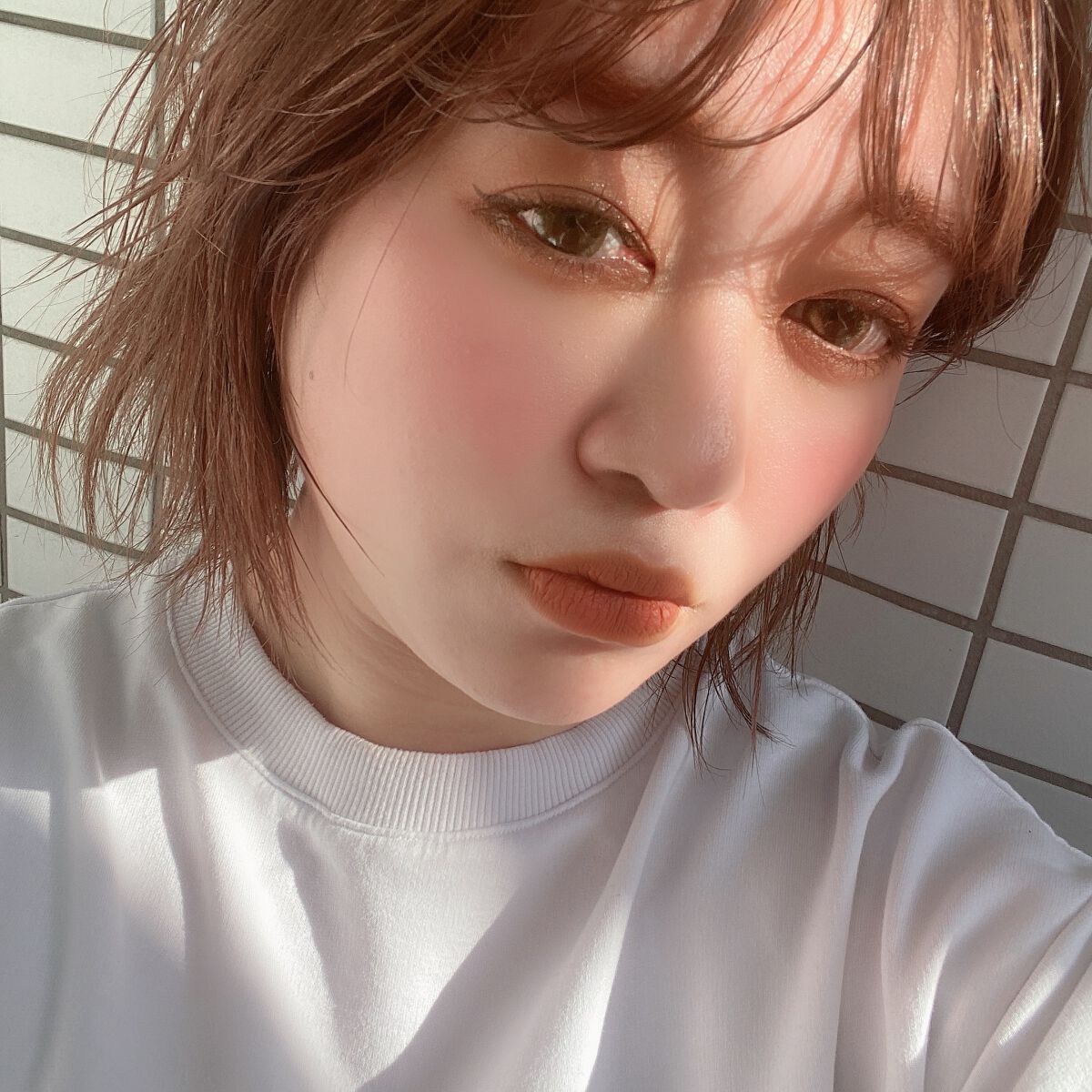アイベースを塗った後、ウェッジを上下の瞼全体にのせる。(彫り深く見える) ウッドウィンクトを密集したブラシにとり、目の窪みまでのアイホールに磨くようにつける テンプティングを下瞼全体にのせた後、ウッドウィンクトを黒目の下にだけのせ涙袋を作る グラウンドブラウンと、エスプレッソを小さめのブラシで、黒目の上を抜かして目頭・目尻に二重幅でくの字に入れる(下目尻の1/3にも) ネイキッドランチを目頭と下瞼の目頭側にのせ抜け感をプラス! 目元が濃くなり血色感がないので、チークはピンクの偏光パールが入ったオレンジチークにして赤みのブラウンリップをつけるとバランスが取れたよっ☺️