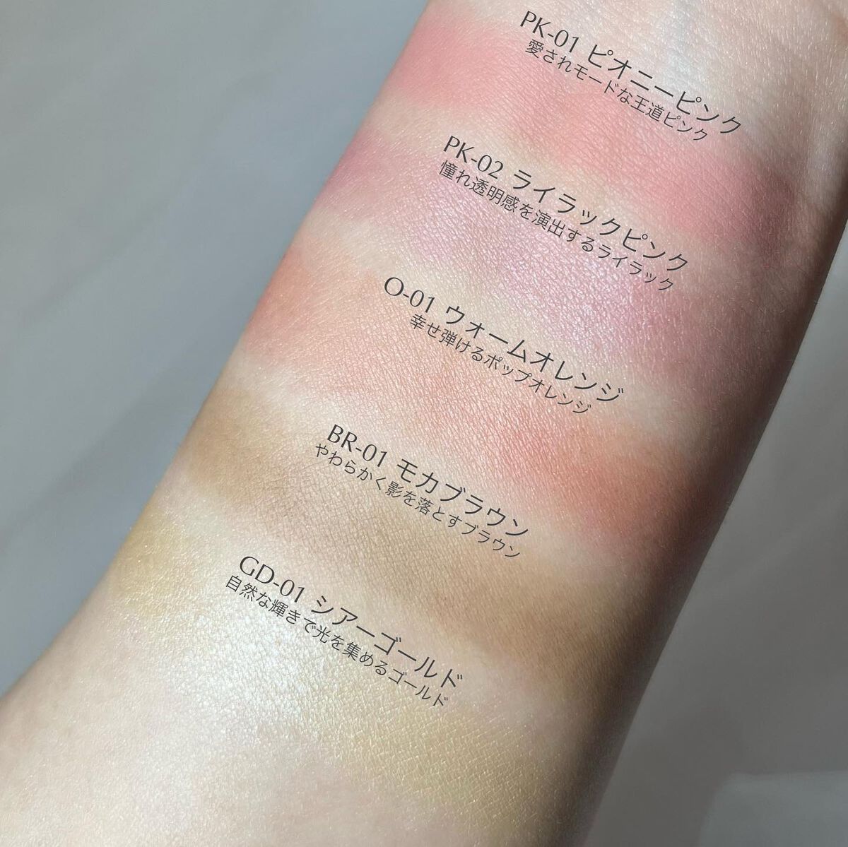 PC問わず使いやすく、ナチュラルに血色感(メイク効果による)を与えてくれるチークカラー¨̮ 肌にしっかり密着してくれるから、これからの時期も大活躍してくれそう◎ ライラックピンクのラメが可愛すぎるし、意外とイエベでも使いやすい青みピンクでした🥹 イエベにピッタリなウォームオレンジもめちゃくちゃ可愛いし、王道ピンクのピオニーピンクも当たり前に可愛い。万人受けしそうなチーク🥹もう全部可愛い🫶 ハイライトとシェーディングもナチュラルに立体感を出してくれるのでとても使いやすいし、メイク初心者の方にもおすすめです◎