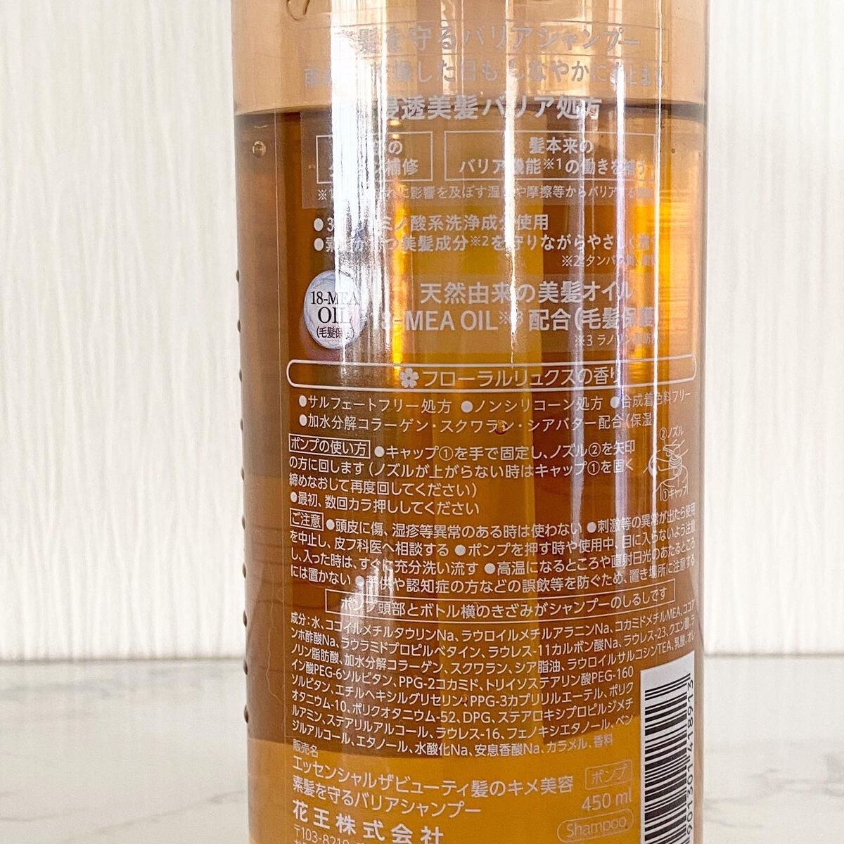 泡立ちは、とっても良かったです 香りは、他のエッセンシャルのシャンプーよりも穏やかでした 素髪を守るバリアシャンプー。雨の日、乾燥した日もしなやかにまとまる。 天然由来の美髪オイル18ーMEA OIL配合 (毛髪保護)