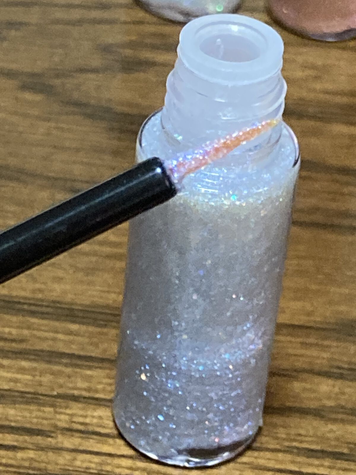 オーロラグリッターって言うだけあって多色のグリッターラメで満たされてます。 パープルが、主なのでブルベさん向きです。 グリッターは、どちらかと言うと青みが強いです。 もう一色ありますが、そちらは、ブラウンが主で、グリーンのグリッターラメが強い感じです。 こちらは、イエベさん向けです。 どちらが人気かと言えば、ブラウン系の方で早々にない感じです。 とりあえず、ブルベの私は、パープルゲット出来て良かったです🤗