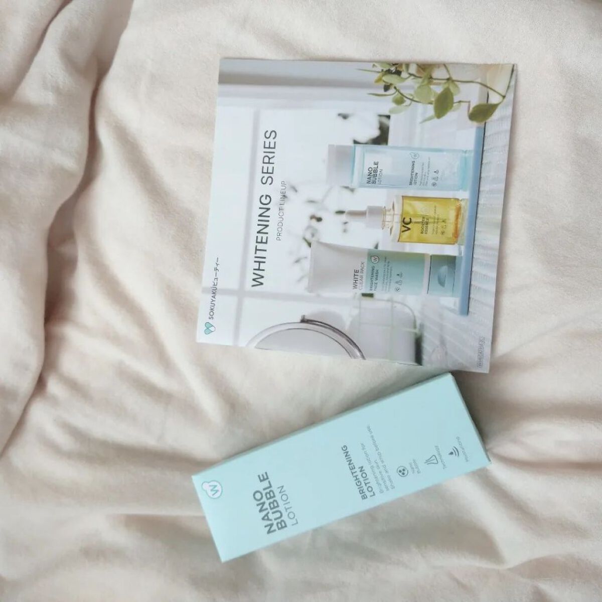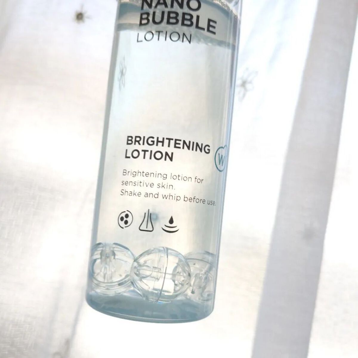 - 【医薬部外品】日本初*1 、ナノバブルの働きで美容成分を肌に届ける*2薬用美白*3化粧水。 ”薬用W・ナノバブルホワイトローション”。ナノバブルパワーで、キメ・毛穴・くすみ*4の肌悩みにアプローチ!容器の発生ボールを振ることで、超微粒子のナノバブルが瞬時に肌の隅々まで浸透*2していきます。美白*3有効成分の「トラネキサム酸」と「グリチルリチル酸」のW薬用成分配合で、うるおいを守りながら、明るい美肌へと導きます。 *1:トラネキサム酸、グリチルリチン酸ジカリウムを配合したナノバブル化粧水として(2022年1月:当社調べ)。*2:角質層まで。 *3:メラニンの生成を抑え、シミそばかすを防ぐ。 *4:乾燥による