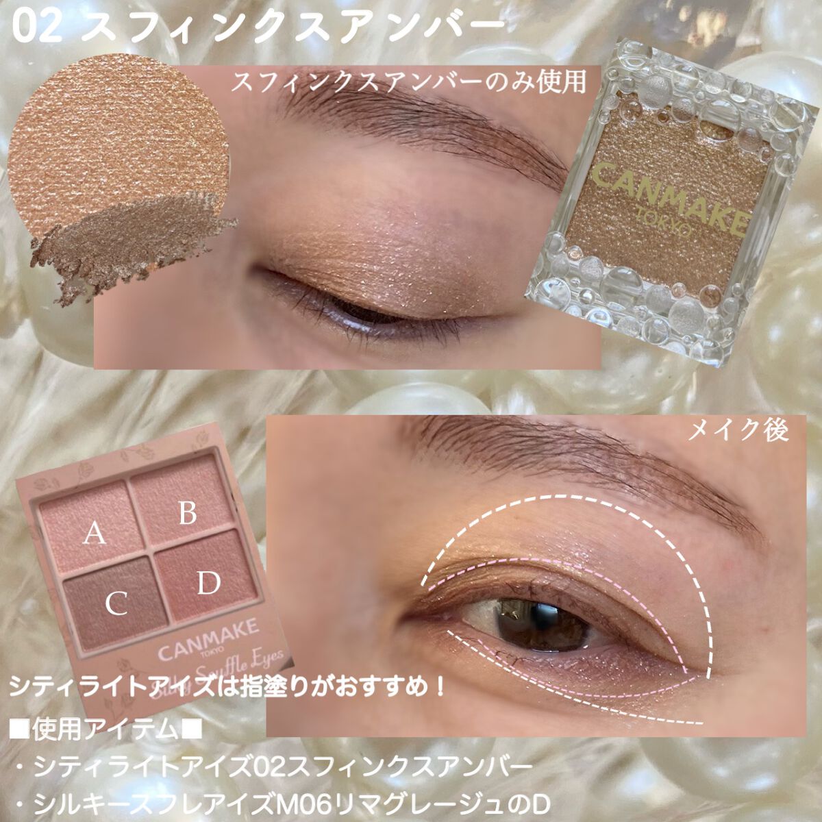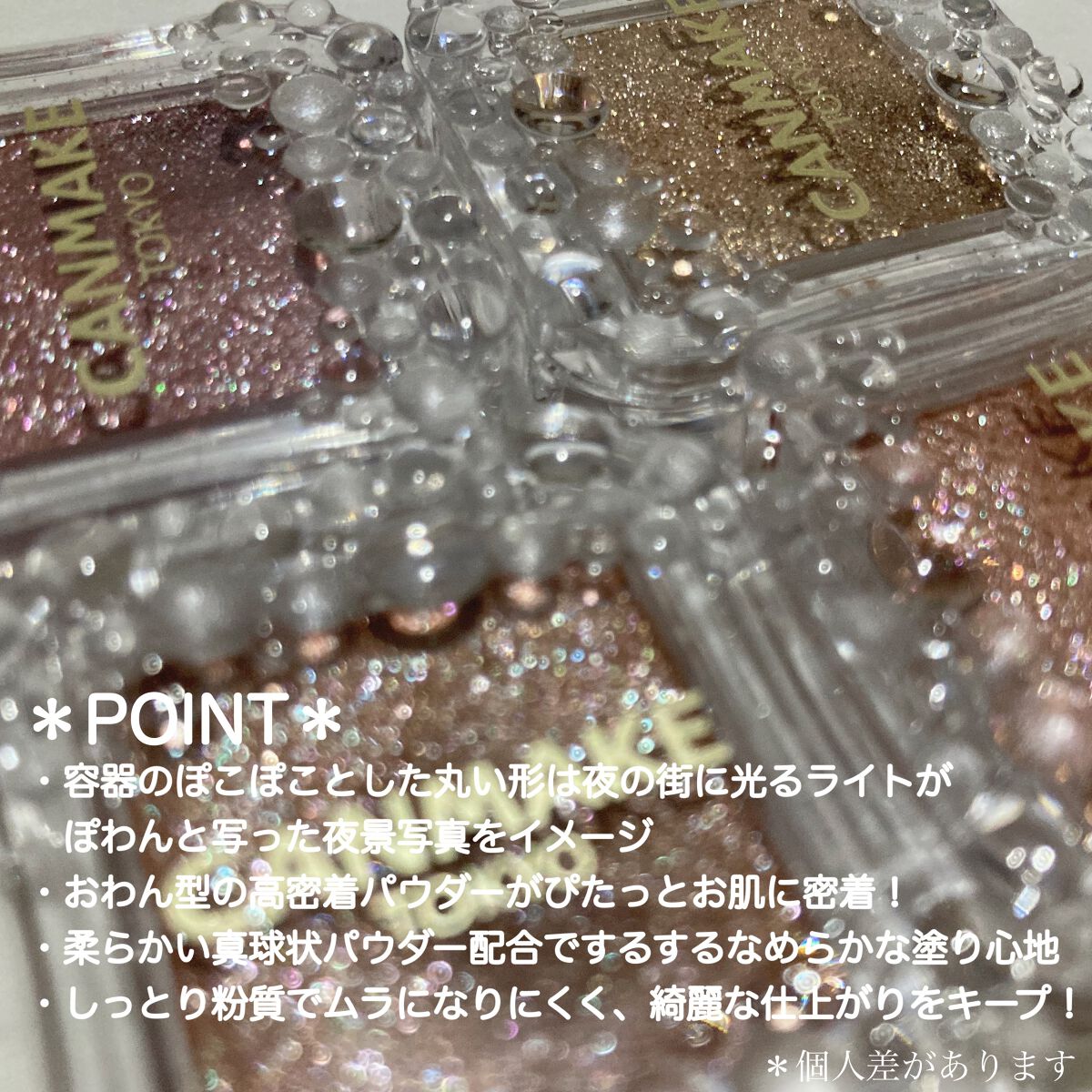 夜景を閉じ込めたような輝き まばゆくまぶたを照らす、シングルアイシャドウ まるで夜景みたいにキラキラと輝く、高輝度パール配合のシングルアイシャドウ。なめらかに伸びるしっとりとした粉質なので、ムラになりにくくキレイな仕上がりが長時間続きます。 公式で「夜景を閉じ込めたような輝き」と素敵な表現をされている通り、細かなパールがキランキランに光ります✨✨