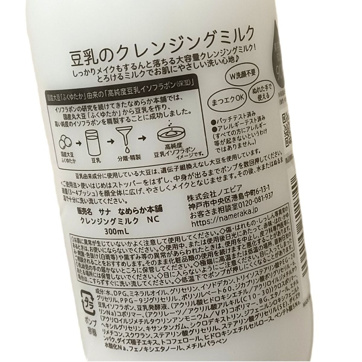 - <クレンジングミルク NC> 水、DPG、ミネラルオイル、グリセリン、イソドデカン、トリイソステアリン酸PEG-20グリセリル、PPG-9ジグリセリル、ポリソルベート60、ジカプリン酸ポリグリセリル-6、豆乳イソフラボン、豆乳発酵液、(アクリル酸ヒドロキシエチル/アクリロイルジメチルタウリンNa)コポリマー、(アクリレーツ/アクリル酸アルキル(C10-30))クロスポリマー、(アクリロイルジメチルタウリンアンモニウム/VP)コポリマー、BG、エタノール、エチルヘキシルグリセリン、キサンタンガム、シクロデキストリン、ジフェニルシロキシフェニルトリメチコン、スクワラン、ステアリン酸グリセリル、ステアリン酸グリセリル(SE)、ダイズタンパク、ダイズ種子エキス、トコフェロール、ヒドロキシエチルセルロース、ペンテト酸5Na、水酸化Na、フェノキシエタノール、メチルパラベン <クレンジングミルク【旧】> 水、DPG、ミネラルオイル、グリセリン、イソドデカン、トリイソステアリン酸PEG-20グリセリル、PPG-9ジグリセリル、ポリソルベート60、ジカプリン酸ポリグリセリル-6、豆乳イソフラボン、豆乳発酵液、(アクリル酸ヒドロキシエチル/アクリロイルジメチルタウリンNa)コポリマー、(アクリレーツ/アクリル酸アルキル(C10-30))クロスポリマー、(アクリロイルジメチルタウリンアンモニウム/VP)コポリマー、BG、エタノール、エチルヘキシルグリセリン、キサンタンガム、シクロデキストリン、ジフェニルシロキシフェニルトリメチコン、スクワラン、ステアリン酸グリセリル、ステアリン酸グリセリル(SE)、ダイズタンパク、ダイズ種子エキス、トコフェロール、ヒドロキシエチルセルロース、ペンテト酸5Na、水酸化Na、フェノキシエタノール、メチルパラベン