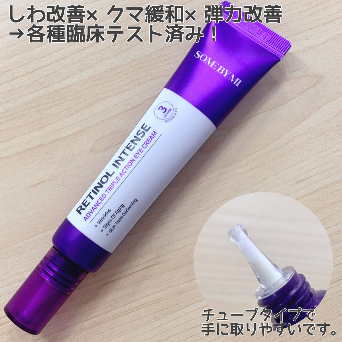 サムバイミーは、トラブル肌、敏感肌に注意を注いでいるスキンケアブランド☝️ そんなサムバイミーが作った、レチノール入りのアイクリームって👀⤴️⤴️ レチノール0.1%+グルタチオン配合で、レチノール入りなのに初心者でも使いやすい😆 クリーム色の、滑らかなクリーム状テクスチャー😌 チューブの先が細く、少量も出しやすいし目元ケアしやすい⤴️