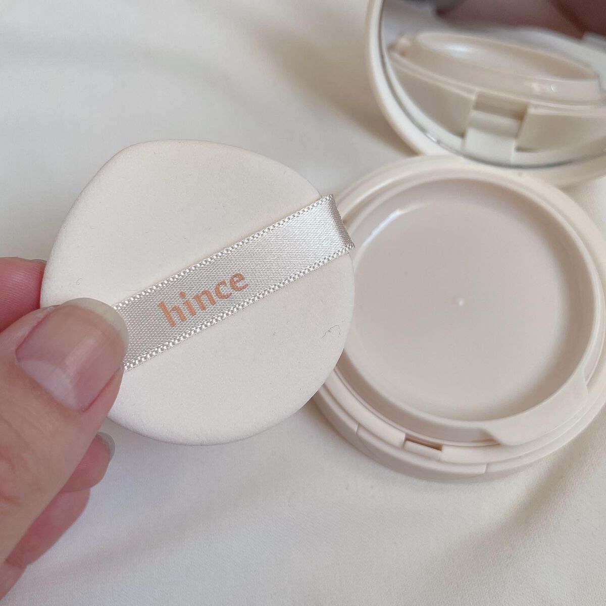hinceさまからいただきましたhinceカバーマスターピンククッションカラーは17ライト、21ピュアアイボリーで17はかなり明るいです、白に近いので21号だと浮かないかなと思います🤍パフは細かいところも塗りやすくていい感じです!仕上がりはセ...