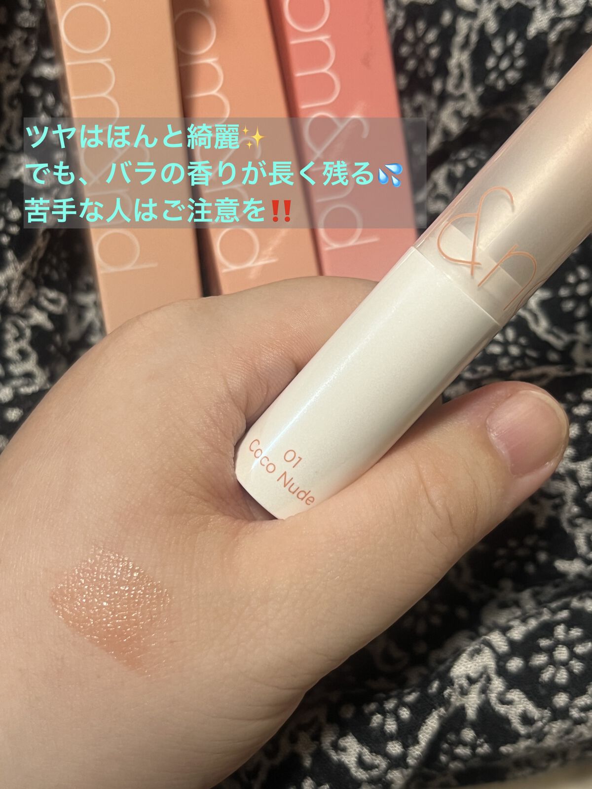 rom&ndグラスティングメルティングバーム08コーラリアColaliaQoo10で安売りしていたので購入。一度出したら戻せないタイプのリップよりはスルスルツヤツヤ感は劣る。技術力の問題か色の問題かもしれないが、丁寧に塗らないとムラになる感じ...