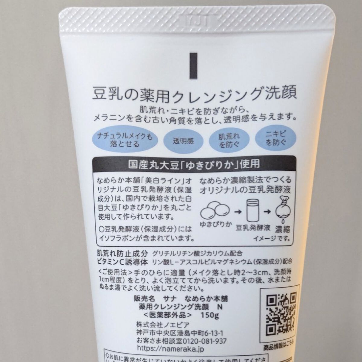 - 豆乳発酵液、肌荒れ防止有効成分*1に加え、ビタミンC誘導体*2を配合。洗いながら、うるおいと透明感のある肌に導きます。もこもこ泡でクレンジング力もアップし、毛穴の中まですっきりキレイに。 *1 グリチルリチン酸ジカリウム(薬用クレンジング洗顔 N、薬用美白ミスト化粧水、とろんと濃ジェル 薬用美白 N) *2 リン酸L‐アスコルビルマグネシウム(保湿成分)