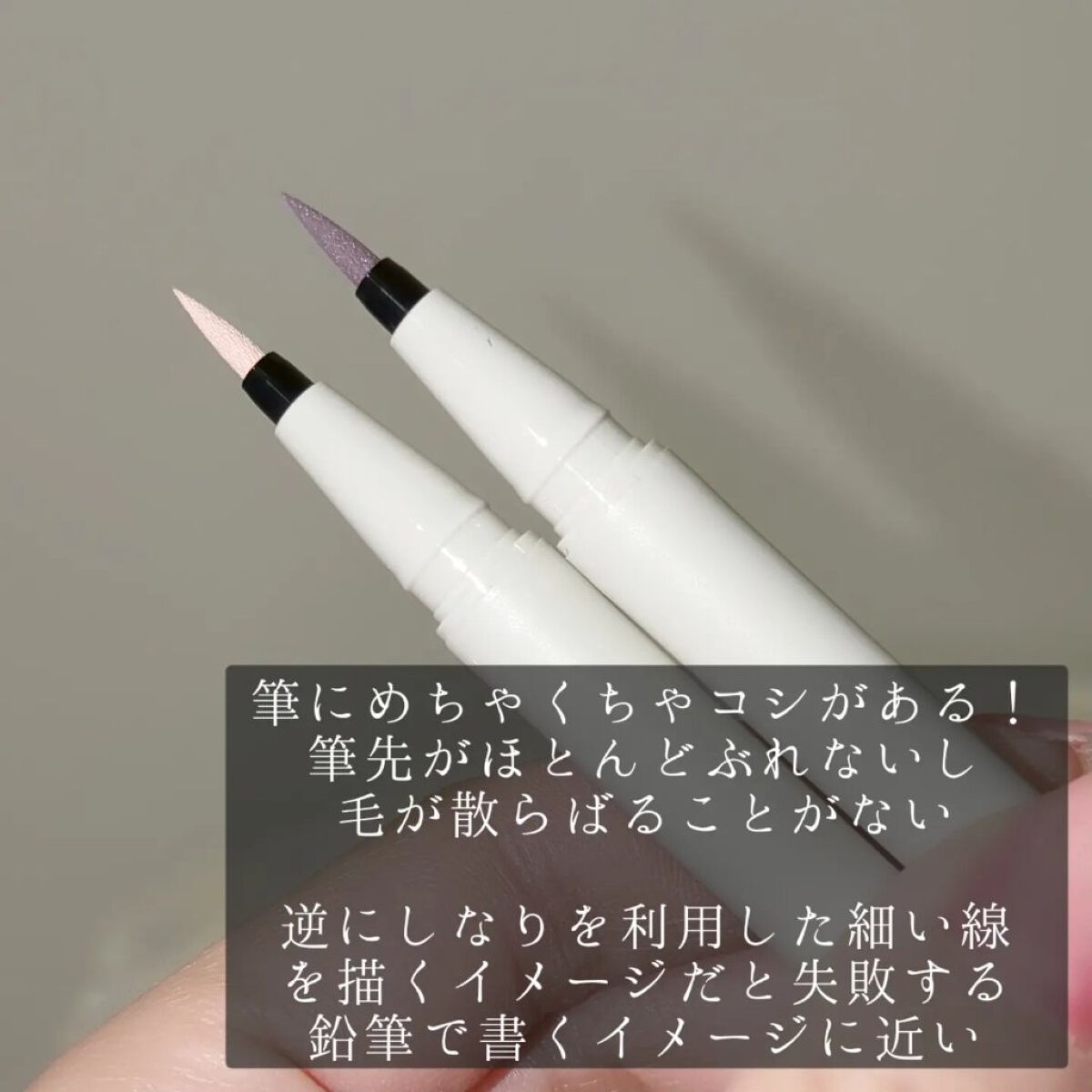 赤みをひとさじいれた、湿度を感じるグレー の「01 レイニーモーヴ」 目元を照らす、月明かりのようなペールオレンジの「02 エクルベージュ」 細くも太くもなめらかに描けて目詰まりしにくい、しなやかなフェルトペンタイプです💭 高発色でニュアンスカラーもくすまず、しっかりアイメイクの主役になってくれます! 汗・水・皮脂・こすれに強いウォータープルーフタイプですが、お湯で落とせます💪 レイニーモーヴは透明感のある絶妙なニュアンスカラーで他にはない色だなと思います…! エクルベージュはホワイトライナーよりも馴染んでくれるのに、メイクをグッとおしゃれにしてくれるので、いつもと違うメイクを楽しみたいけど…ちょっと勇気がない…という方に試してほしいです!
