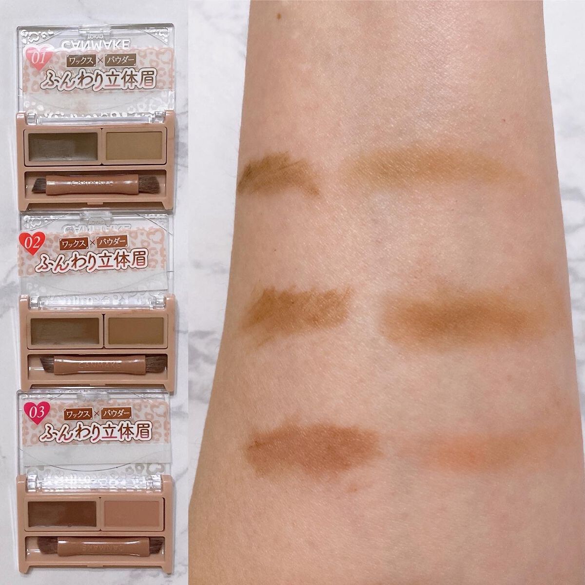 - ワックス×パウダー 異なる質感で作るふんわり立体眉 ワックスベースとパウダーベース、2つの異なる質感・発色を重ねることで、 絶妙なニュアンスを生み出しまるで本物の眉のような仕上がりに。 ワックスベースの上にパウダーベースを重ねることで、密着力がUP! メイクしたての仕上がりをキープできます! ◆ワックスベース◆ しっかりと発色する濃いめのカラーは、眉毛の隙間を埋めつつ眉の形を整えます。 ワックスなのにベタつかず、毛の立ち上がりをしっかりキープ。毛流れを感じる眉に仕上がります。 ★伸びが良くムラになりにくいため、初心者さんでも描きやすい! ◆パウダーベース◆ ふんわりと発色する淡めのカラーは、眉に奥行きが出て、立体的に仕上がります。