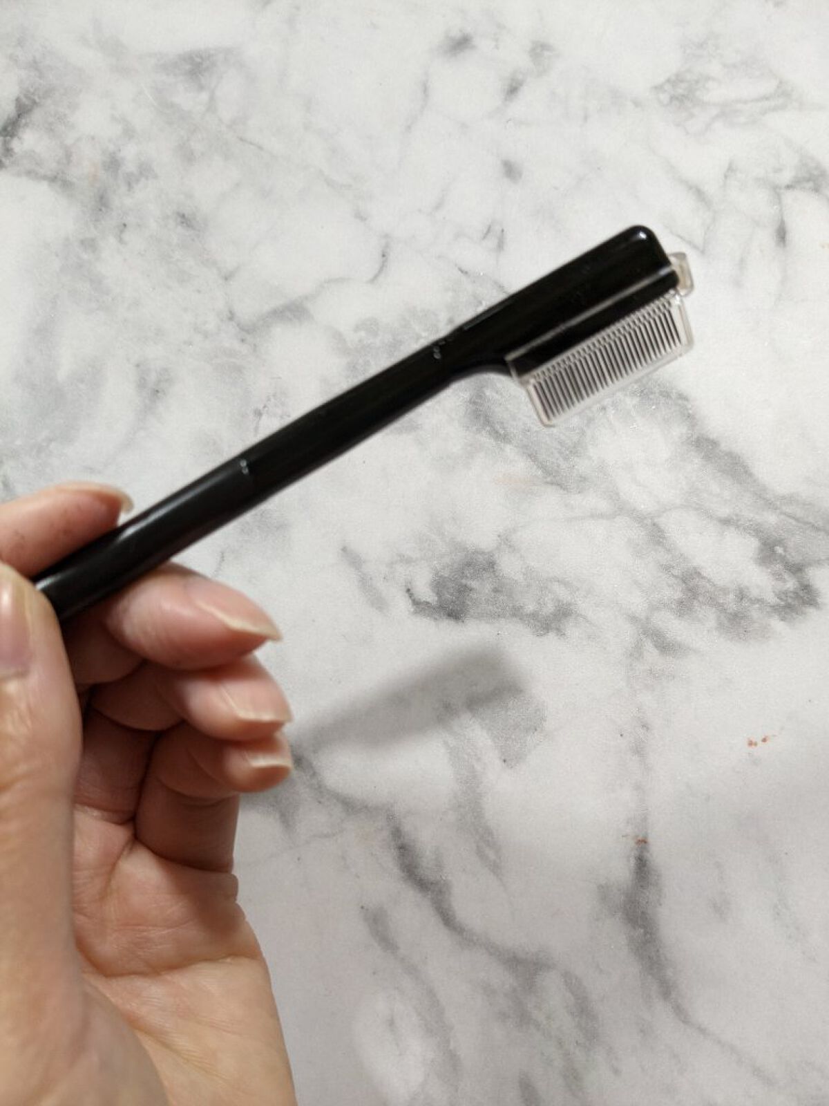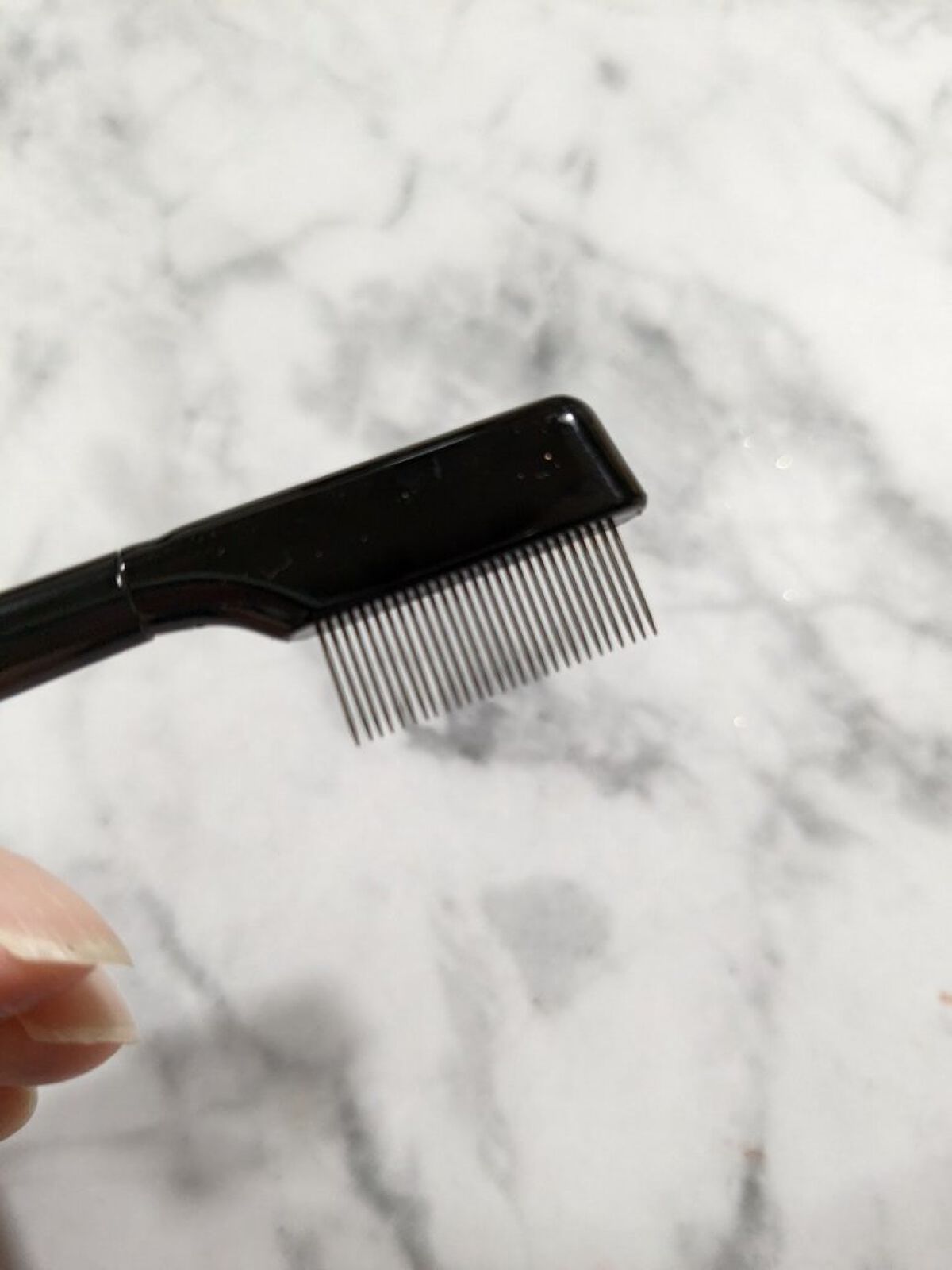 こちらは330円の商品。まつ毛を美しくセパレートさせる目の細かいコームになります✨ コームがステンレススチールなのでしっかりまつ毛をとかせます。マスカラの仕上げに使用すると綺麗にセパレートできて◎ 持ち手も長いので使いやすいし、メイクブラシと一緒に収納しやすいです👍