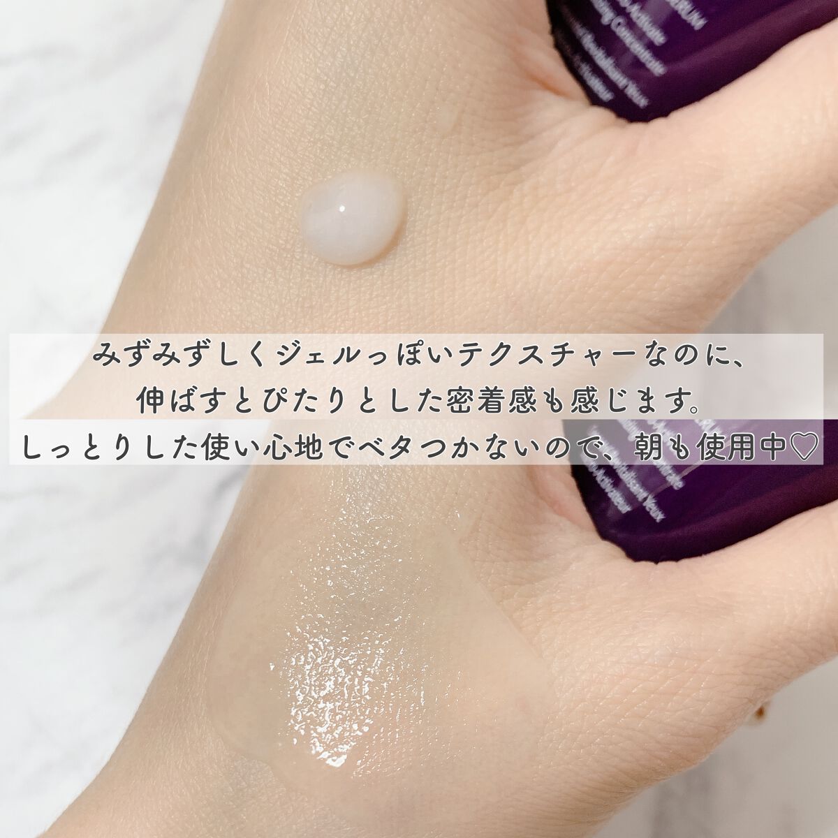 乳液のような軽やかでみずみずしくなめらかなテクスチャー。 すっと伸びて、軽やかな割に密着力も高く、しっかり保護されている感覚もきちんとあります。 ベタつきなくしっとりなので、若くてクリームに手を出したことのない方やクリーム苦手民にぜひ使ってみてほしい! それくらい軽いのにしっとりする、絶妙なバランス感のクリームです。