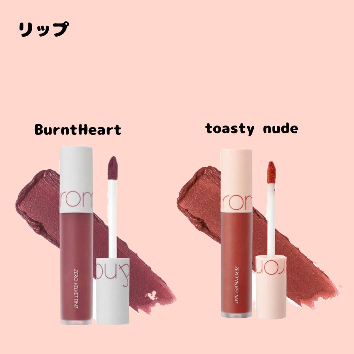第二弾もあるよ❕ A. BLACKアーティスティックベルベットティント 06 PERIPERAインクエアリーベルベットスティック 03 rom&ndゼロマットリップスティック 18 タンニングレッド