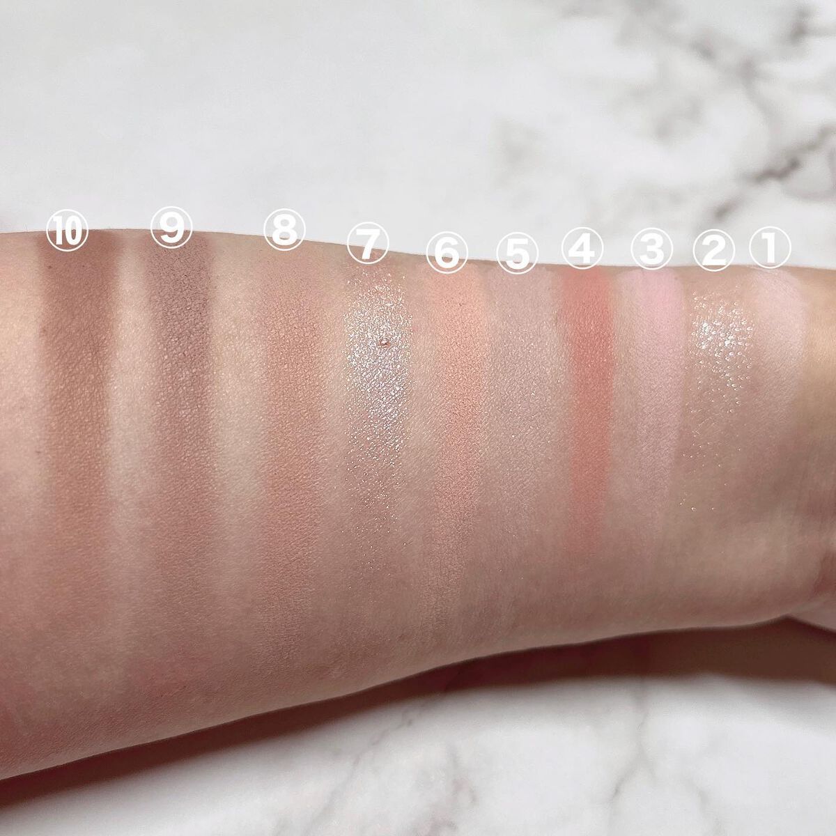 テクスチャーはサラサラだけど、飛び散るわけではなくて吸い付いてくる感じでした。 グリッターは、湿式のウェットさと押すとムニっとして、ちょっとゼリーテイストな気がします。ギラギラすぎなくて使いやすかったです。 ⑥はピンクも混ざっていてとても可愛い。アイスクリーム屋さんのストロベリーチーズケーキみたいな🍓これも、白すぎなくて肌馴染みの良い白系なので使いやすかったです。