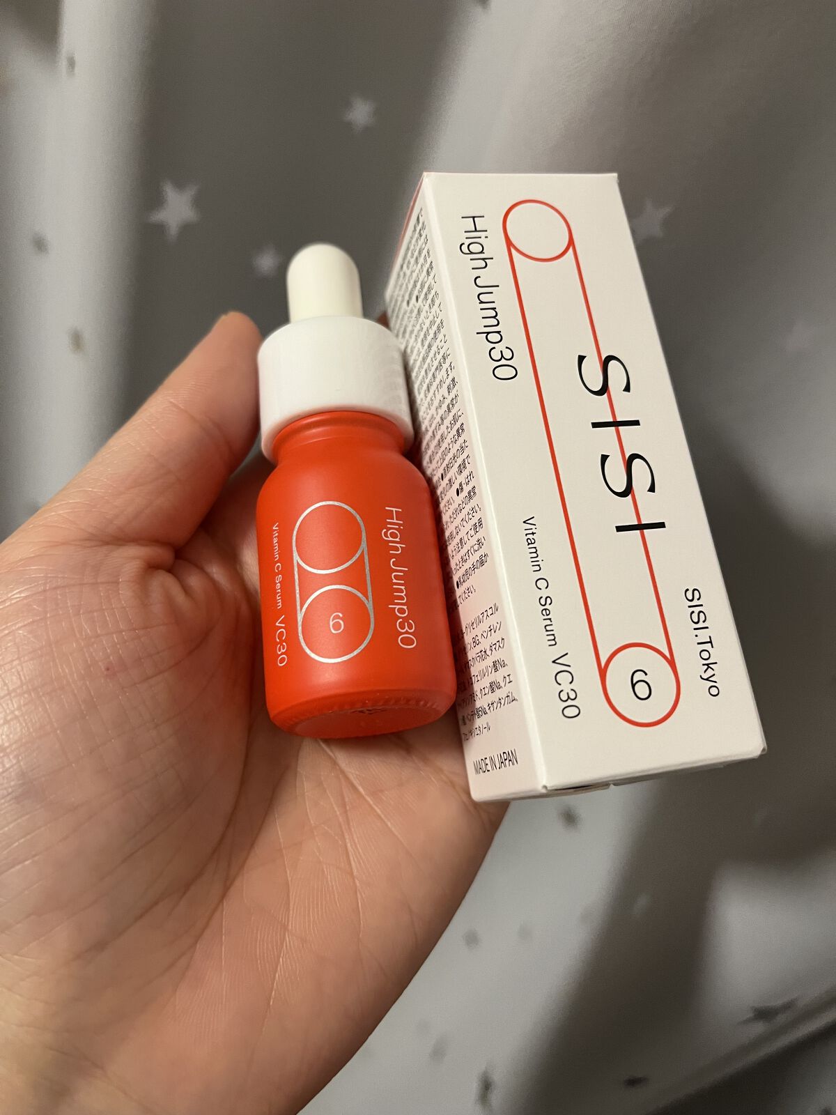 SISI High Jump30はVC30の高濃度ビタミンC美容液です。 10mL入りのコンパクトなボトルです。 適量取りやすく、清潔に使えるスポイトタイプ。 朝晩の洗顔後、最初使います。 3~5滴程度を手のひらにとり、指先で肌に優しくなじませます。 肌にスーッと馴染み、刺激が全然ないですね。 花粉症の時期の敏感になっている肌でも大丈夫でした。 少しだけとろみはあるけど、みずみずしくて軽い使い心地です。