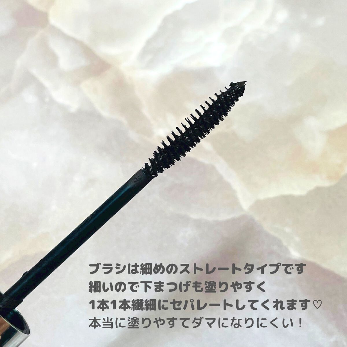 ブラシは細めで細かいところも塗りやすいのですがカールキープ力はあまり感じず。ダマになりにくいけど重ね塗りすると少しダマになる感じが気になる。 毛一本一本セパレートされて束感まつげが苦手な方や綺麗にセパレートされてナチュラルな感じが好きな方にはおすすめです!