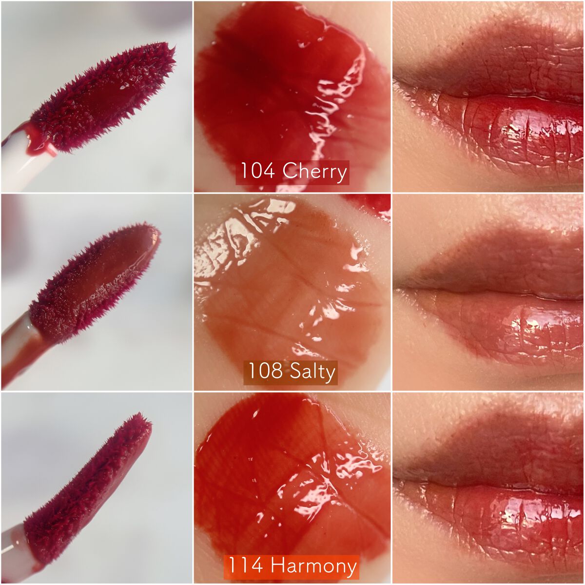 - <101 ジョイフル> 水、リンゴ酸ジイソステアリル、ダイマージリノール酸(フィトステリル/イソステアリル/セチル/ステアリル/ベヘニル)、ジイソステアリン酸ダイマージリノレイル、ノナイソステアリン酸ポリグリセリル-10、オクチルドデカノール、ビスジグリセリルポリアシルアジペート-2、水添ポリイソブテン、セチルPEG/PPG-10/1ジメチコン、ポリソルベート60(小麦由来)、イソステアリン酸ソルビタン(小麦由来)、1,2-ヘキサンジオール、グリセリン、ベヘニルアルコール、(アクリル酸/MA)コポリマーNa、ペンチレングリコール、BG、ポリアクリレート-13、トロメタミン、(アクリレーツ/アクリル酸アルキ ル(C10-30 )クロスポリマー、エチルヘキシルグリセリン、ポリイソブテン、(アクリル酸ヒドロキシエチル/アクリロイルジメチルタウリンNa)コポリマー、スクワラン、デヒドロ酢酸、ステビオシド、香料、フィチン酸、カプリリルグリコール、ジメチコン、水添ロジン酸メチル、水酸化Al、ポリソルベート20(小麦由来)、トコフェロール、ライム果汁、キイチゴ果汁、レモン果汁、マンゴー果汁、フラガリアチロエンシス果汁、アンズ果汁、オレンジ果汁、グレープフルーツ液汁、キウイ果汁、パパイア果汁、[+/-]酸化チタン、黄4、黄5、赤 104(1)、赤227、青1 <102 デューイ> 水、リンゴ酸ジイソステアリル、ダイマージリノール酸(フィトステリル/イソステアリル/セチル/ステアリル/ベヘニル)、ジイソステアリン酸ダイマージリノレイル、ノナイソステアリン酸ポリグリセリル-10、オクチルドデカノール、ビスジグリセリルポリアシルアジペート-2、水添ポリイソブテン、セチルPEG/PPG-10/1ジメチコン、ポリソルベート60(小麦由来)、イソステアリン酸ソルビタン(小麦由来)、1,2-ヘキサンジオール、グリセリン、ベヘニルアルコール、(アクリル酸/MA)コポリマーNa、ペンチレングリコール、BG、ポリアクリレート-13、トロメタミン、(アクリレーツ/アクリル酸アルキル(C10-30))クロスポリマー、エチルヘキシルグリセリン、ポリイソブテン、(アクリル酸ヒドロキシエチル/アクリロイルジメチルタウリンNa)コポリマー、スクワラン、デヒドロ酢酸、ステビオシド、香料、フィチン酸、ジメチコン、水添ロジン酸メチル、水酸化Al、カプリリルグリコール、ポリソルベート20(小麦由来)、トコフェロール、ライム果汁、キイチゴ果汁、レモン果汁、マンゴー果汁、フラガリアチロエンシス果汁、アンズ果汁、オレンジ果汁、グレープフルーツ液汁、キウイ果汁、パパイア果汁、酸化チタン、赤227、黄5、黄4、青1 <103 ハミング> 水、リンゴ酸ジイソステアリル、ダイマージリノール酸(フィトステリル/イソステアリル/セチル/ステアリル/ベヘニル)、ジイソステアリン酸ダイマージリノレイル、ノナイソステアリン酸ポリグリセリル-10、オクチルドデカノール、ビスジグリセリルポリアシルアジペート-2、水添ポリイソブテン、セチルPEG/PPG-10/1ジメチコン、ポリソルベート60(小麦由来)、イソステアリン酸ソルビタン(小麦由来)、1,2-ヘキサンジオール、グリセリン、ベヘニルアルコール、(アクリル酸/MA)コポリマーNa、ペンチレングリコール、BG、ポリアクリレート-13、トロメタミン、(アクリレーツ/アクリル酸アルキル(C10-30))クロスポリマー、エチルヘキシルグリセリン、ポリイソブテン、(アクリル酸ヒドロキシエチル/アクリロイルジメチルタウリンNa)コポリマー、スクワラン、デヒドロ酢酸、ステビオシド、香料、フィチン酸、ジメチコン、水添ロジン酸メチル、水酸化Al、カプリリルグリコール、ポリソルベート20(小麦由来)、トコフェロール、ライム果汁、キイチゴ果汁、レモン果汁、マンゴー果汁、フラガリアチロエンシス果汁、アンズ果汁、オレンジ果汁、グレープフルーツ液汁、キウイ果汁、パパイア果汁、酸化チタン、黄5、赤227、青1 <104 チェリー> 水、リンゴ酸ジイソステアリル、ダイマージリノール酸(フィトステリル/イソステアリル/セチル/ステアリル/ベヘニル)、ジイソステアリン酸ダイマージリノレイル、ノナイソステアリン酸ポリグリセリル-10、オクチルドデカノール、ビスジグリセリルポリアシルアジペート-2、水添ポリイソブテン、セチルPEG/PPG- 10/1ジメチコン、イソステアリン酸ソルビタン(小麦由来)、ポリソルベート60(小麦由来)、1,2-ヘキサンジオール、グリセリン、ベヘニルアルコール、(アクリル酸/MA)コポリマーNa、ペンチレングリコール、BG、ポリアクリレート-13、ト ロメタミン、(アクリレーツ/アクリル酸ア ルキル(C10-30))クロスポリマー、エチルヘキシルグリセリン、ポリイソブテ ン、(アクリル酸ヒドロキシエチル/アクリ ロイルジメチルタウリンNa)コポリマー、スクワラン、デヒドロ酢酸、ステビオシド、香料、カプリリルグリコール、ポリソルベー ト20(小麦由来)、トコフェロール、ライム果汁、キイチゴ果汁、レモン果汁、マンゴー 果汁、フラガリアチロエンシス果汁、アンズ 果汁、オレンジ果汁、グレープフルーツ液 汁、キウ