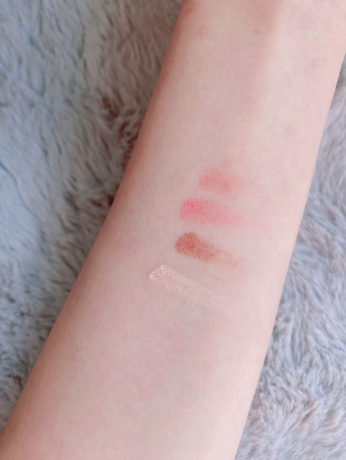 液体そのものがラベンダーの色味をしています。 色味補正機能によりワントーン明るく、白肌に見せてくれます。 伸びが良く塗り広がりが良いです。 確かにトーンアップしますが、私は元々肌が白いのであまり大きな差を感じられない気がしました。 液体そのものは一般的なUVのように白色。 パールが入っており、自然な光沢感を出してくれます。 光を反射したかのような仕上がり。太陽の下に出るとキラキラ輝く肌✨ こちらも塗り広がりはとても良いです。 白肌さんにオススメ! 肌をワンランク上に魅せてくれる気がします💗