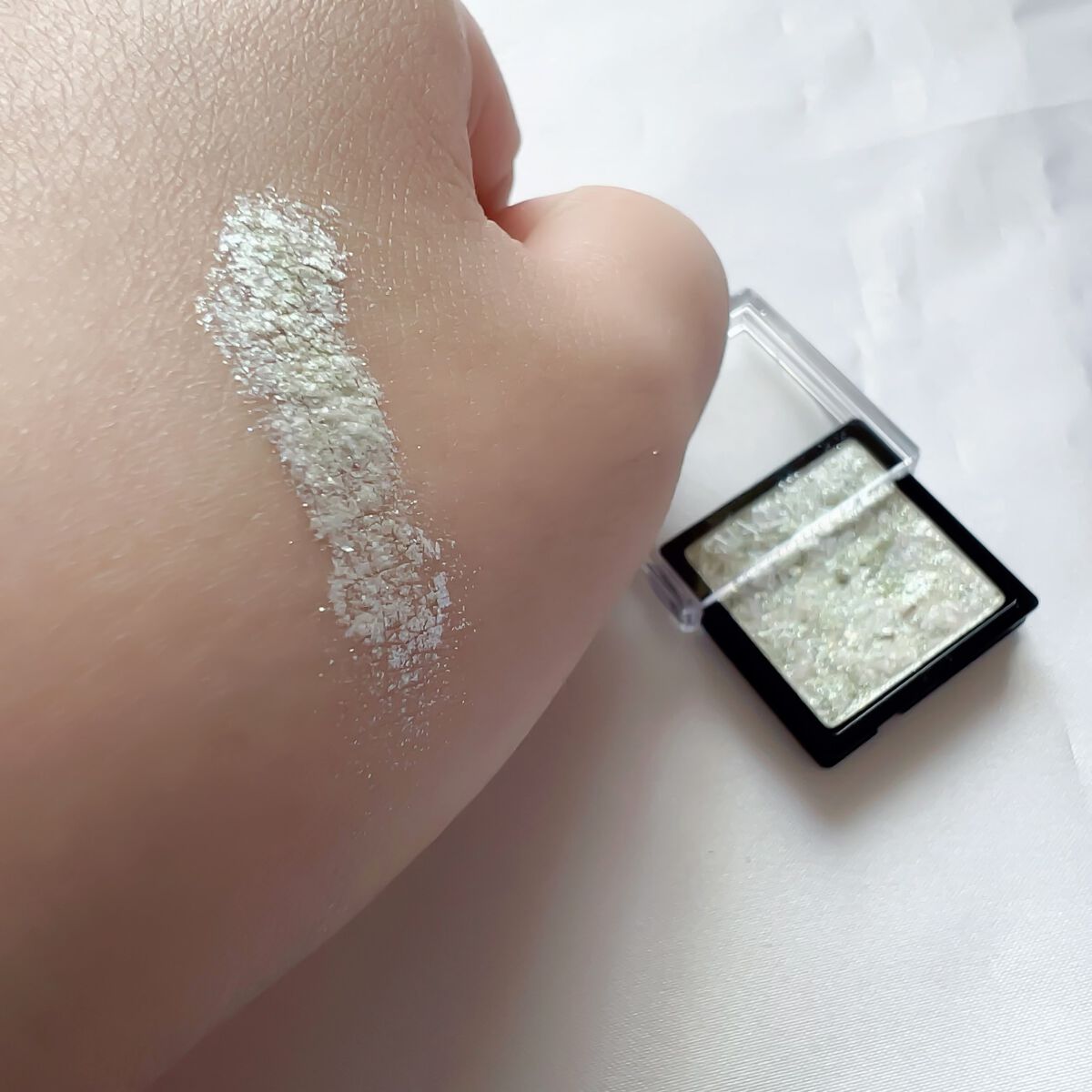 キラッとまぶたを輝かせる爽やかな色 春夏にもってこいなカラーで透明感爆上がり♥️ 結構しっとり感を感じるテクスチャー 粉飛びはそこまでないのでのせたいところにラメをのせられる! はっきりとグリーン!て感じの色では無いからチャレンジしやすそう🥹