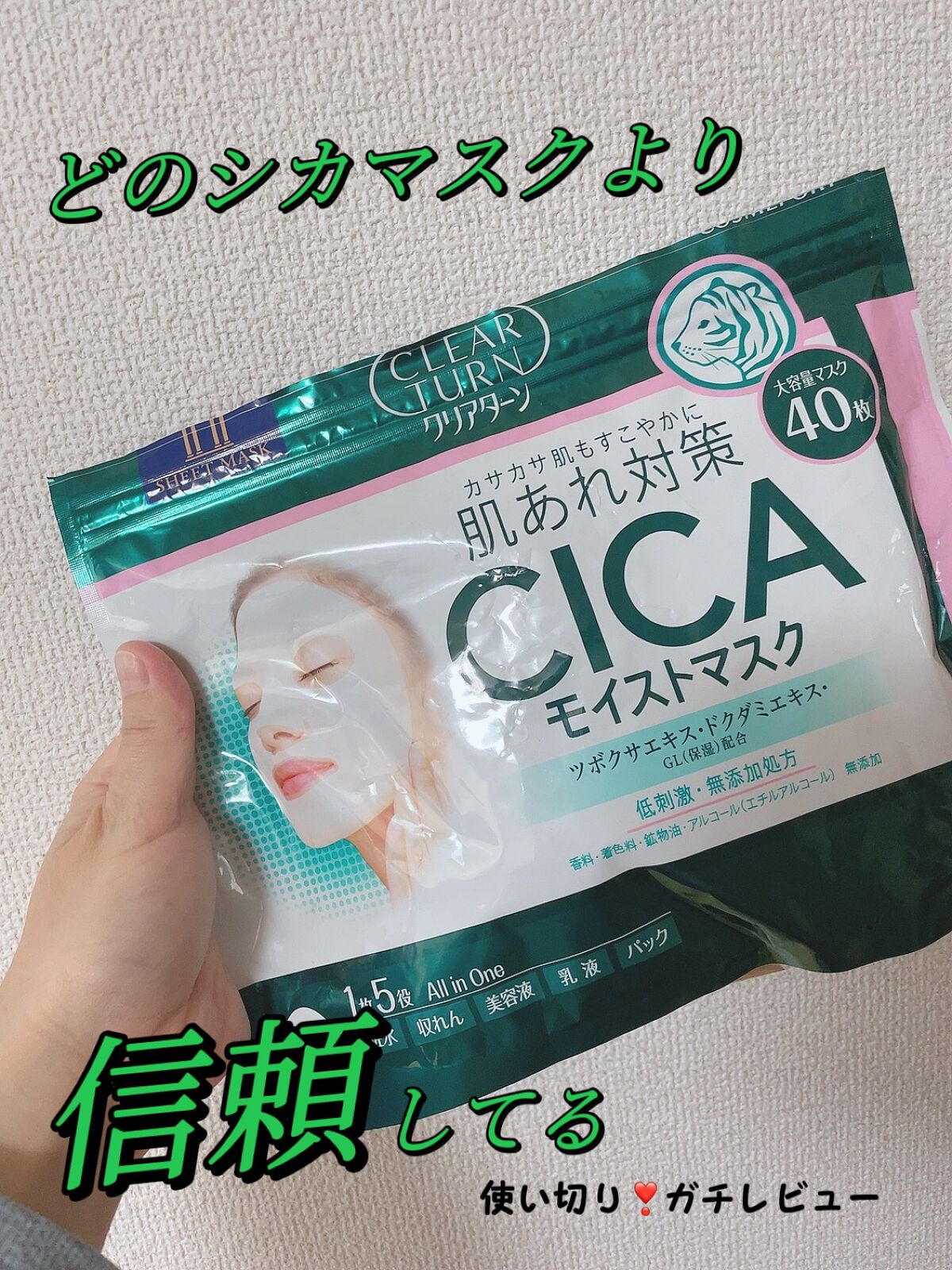 - カサカサ肌もすこやかに 肌あれ対策のCICAモイストマスク! 1.毎日の肌あれケアに。CICAケア オールインワンマスク みずみずしいタッチの美容液が角層奥のすみずみまでゆきわたり、ダメージを受けやすい肌もしっかり保湿。 肌あれトラブルを防ぎます。 1品5役:化粧水+収れん+美容液+乳液+パック 2 肌の調子をととのえ、うるおいバリアをサポート 毎日使っても負担感の少ないやさしい使い心地。角層内部の水分・油分のバランスをととのえ、すこやかな肌をキープします。 3 やわらかさと密着感を兼ね備えたなめらかシート 超極細繊維を使ったシートで肌をやさしく包みこみます。100%バイオマス由来のシートマスクで、 環境により配慮した素材を使用しています。