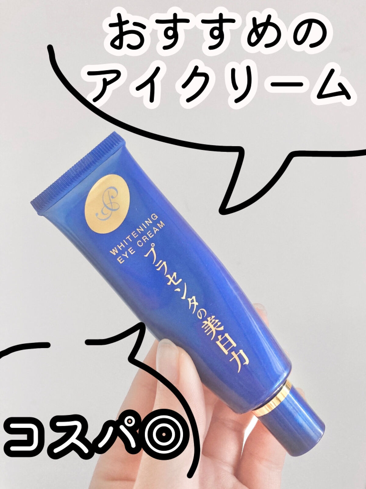 〜コスパの良い保湿力抜群のアイクリーム🙆‍♀️〜 明色 プラセホワイター 薬用美白アイクリーム (星評価の基準)ーーーーーーーーーーーーーー ★…2度と使わない。自信を持っておすすめ出来ない。 ★★…リピートなし。私は残念ながら使いこなせなかったけれど、きっと合う人もいるはず! ★★★…普通に良い👍リピートするかは分からないが自信を持っておすすめ出来る。 ★★★★…とても良い👍🙌人に進んでおすすめしたくなるレベル。 ★★★★★…リピート確定👏🙌✨ 良すぎてもはや誰にも教えたくないレベル。 ✂ーーーーーーーーーーーーーーーーーーーー 使用レポート✍🏻📋⸝‍⋆ ・保湿力⇒かなりある ・コスパ⇒かなり良い ・色⇒白い、伸ばすと透明になる ・ベタつき⇒薄く塗れば気にならない ・量⇒両目で米粒程度 ・メイク前に使えるか⇒薄く塗れば大丈夫 閲覧ありがとうございます(_ _) 質問、コメント等ありましたらお気軽にどうぞ🙌 #正直レポ