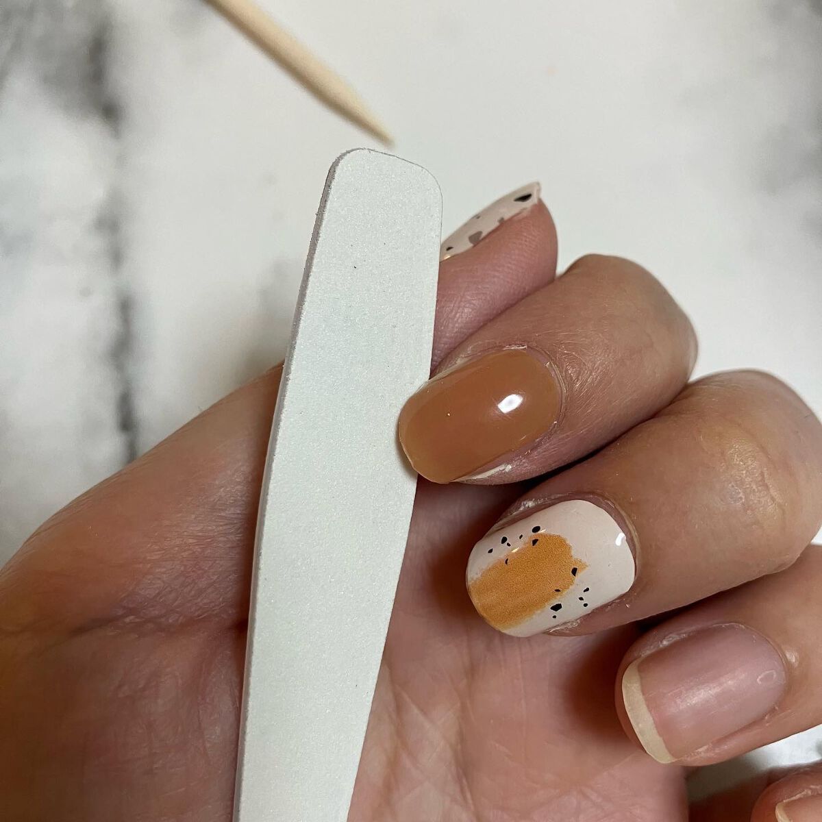 春っぽネイルはEDGEU。EDGEUは貼るジェルネイルで、小さめ爪さんにもフィットする形とぷっくりとしたフォルムとツヤ感を手軽に楽しめる💅 UVやLEDランプなしでもOKだけど、使ったほうがより持ちが良くなるよ。あとトップコートを塗るとさらに長持ち✨