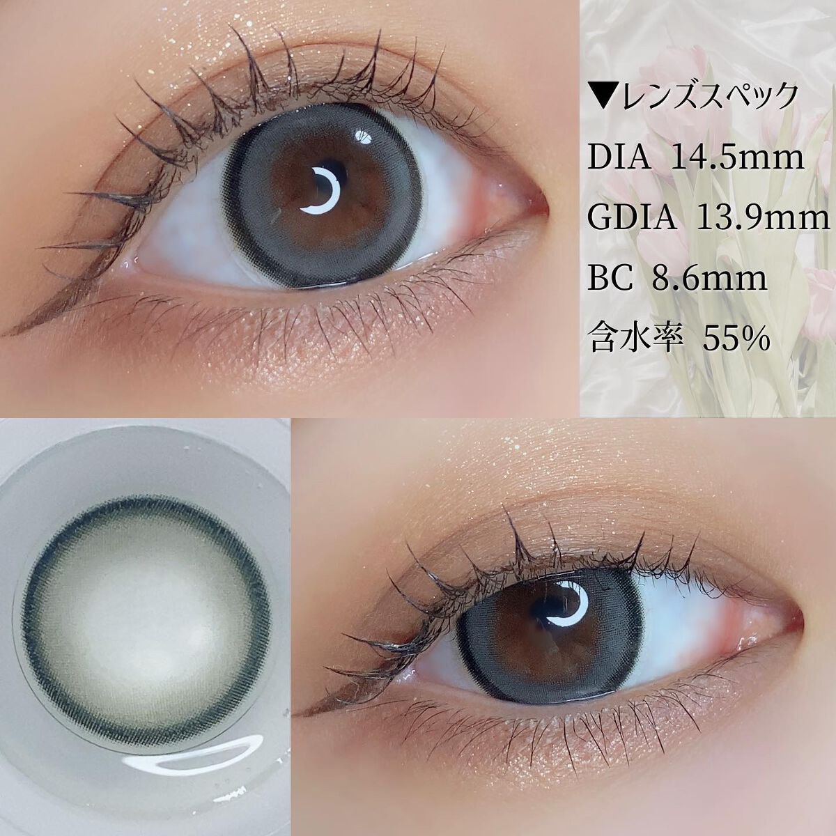 - DIA14.5mm「デカ目」がメインコンセプトの盛りの王道カラコンブランド。 ナチュラル、ハーフ、デカ目までカラバリ豊富な展開。 度数(PWR):全25度数 ±0.00,-0.75 ~-5.00(0.25step)、-5.50~-8.00(0.50step) DIA14.5mm/BC8.6mm