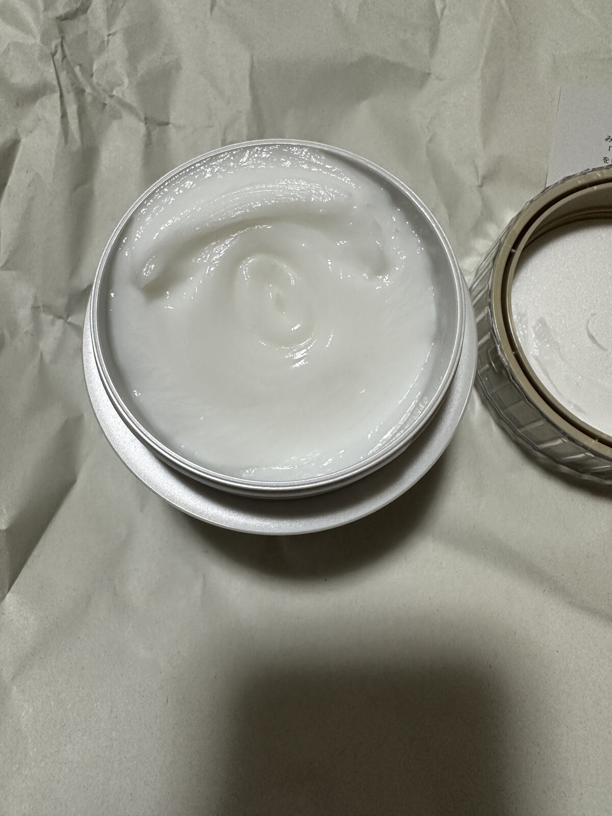 - <180g> 水、ステアリルアルコール、ステアロキシプロピルジメチルアミン、DPG、ジメチコン、乳酸、ヒマワリ種子油、ラノリン脂肪酸、ビスメトキシプロピルアミドイソドコサン、シア脂、加水分解コンキオリン、リンゴ酸、ポリアクリル酸、ポリアクリル酸Na、ポリクオタニウム-39、ポリグリセリン-3、イソステアリルグリセリル、セテアレス-7、セテアレス-25、PEG-45M、(ビスイソブチルPEG-14/アモジメチコン)コポリマー、ビスセテアリルアモジメチコン、アモジメチコン、BG、ベンジルアルコール、香料