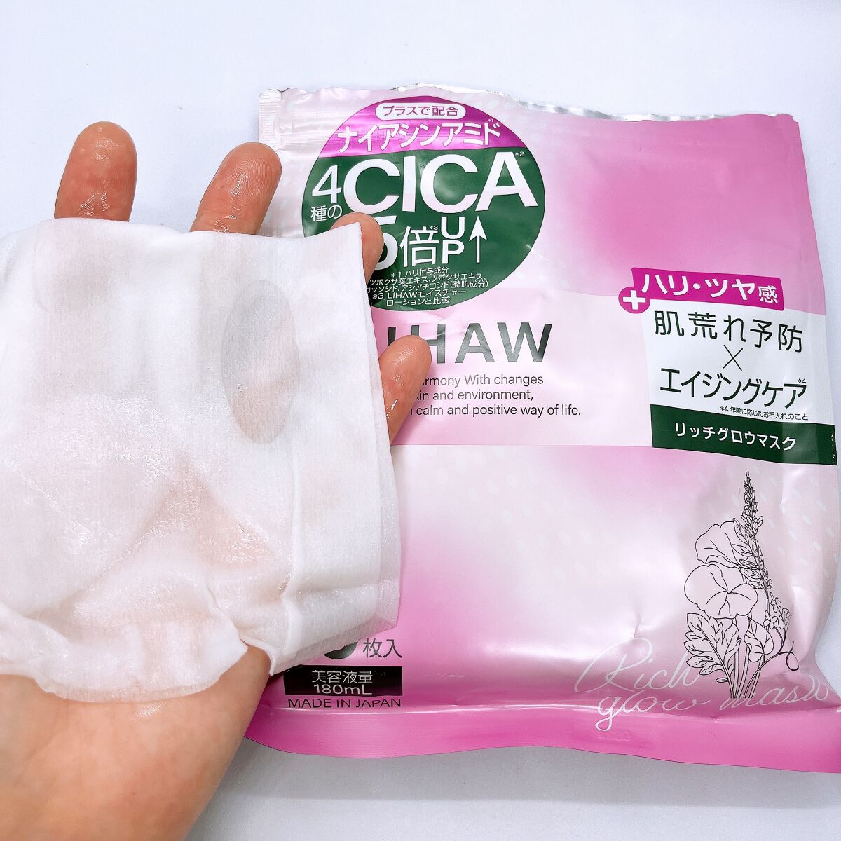 LIHAWさんは洗顔料もよく、違うシリーズのシートも使ったことがあり、お肌がウルウルになった記憶があるので、今回も期待してました 思ったてとおり、ウルウルになる使用感で、少し厚めのシートが使いやすい! 肌荒れ予防×プレエイジングケア(年齢あったお手入れ)ができるシートマスク CICA成分配合 さらに今話題のハリツヤ付与成分バクチオールや、ハリ付与成分ナイアシンアミドとガラクトミセスを配合 1袋に180ml分の美容成分がぎゅっとつまったスペシャルなケアで、毎日使えちゃうマスクです ローズゼラニウムやベルガモットなどの精油をブレンドしたハーバルフローラルの香りが癒しをもたらします!