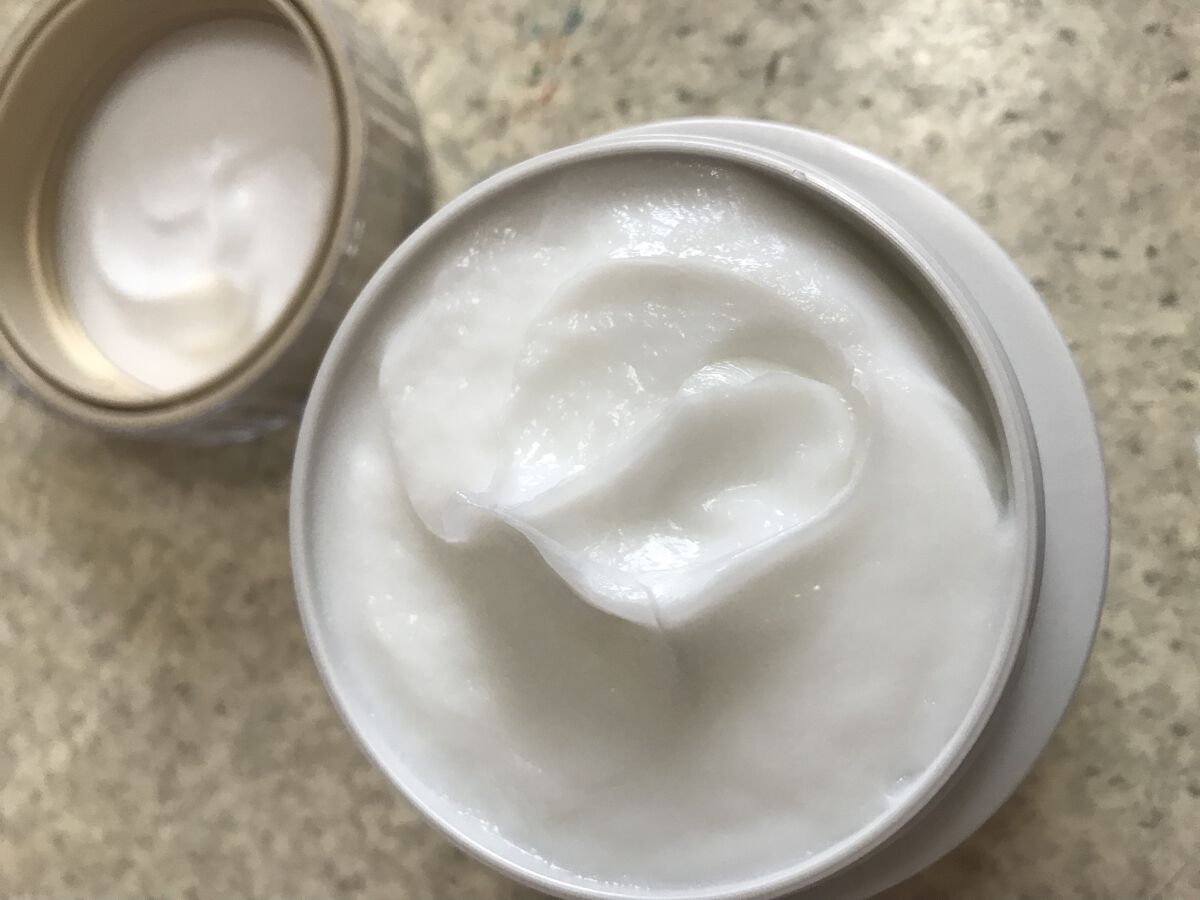 - <180g> 水、ステアリルアルコール、ステアロキシプロピルジメチルアミン、DPG、ジメチコン、乳酸、ヒマワリ種子油、ラノリン脂肪酸、ビスメトキシプロピルアミドイソドコサン、シア脂、加水分解コンキオリン、リンゴ酸、ポリアクリル酸、ポリアクリル酸Na、ポリクオタニウム-39、ポリグリセリン-3、イソステアリルグリセリル、セテアレス-7、セテアレス-25、PEG-45M、(ビスイソブチルPEG-14/アモジメチコン)コポリマー、ビスセテアリルアモジメチコン、アモジメチコン、BG、ベンジルアルコール、香料