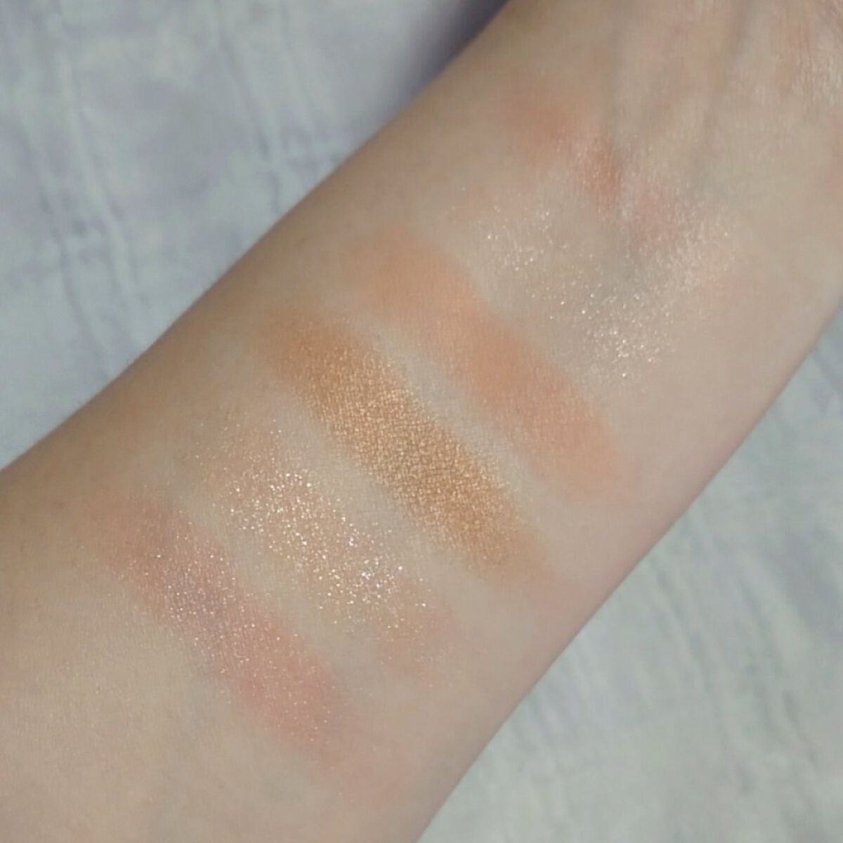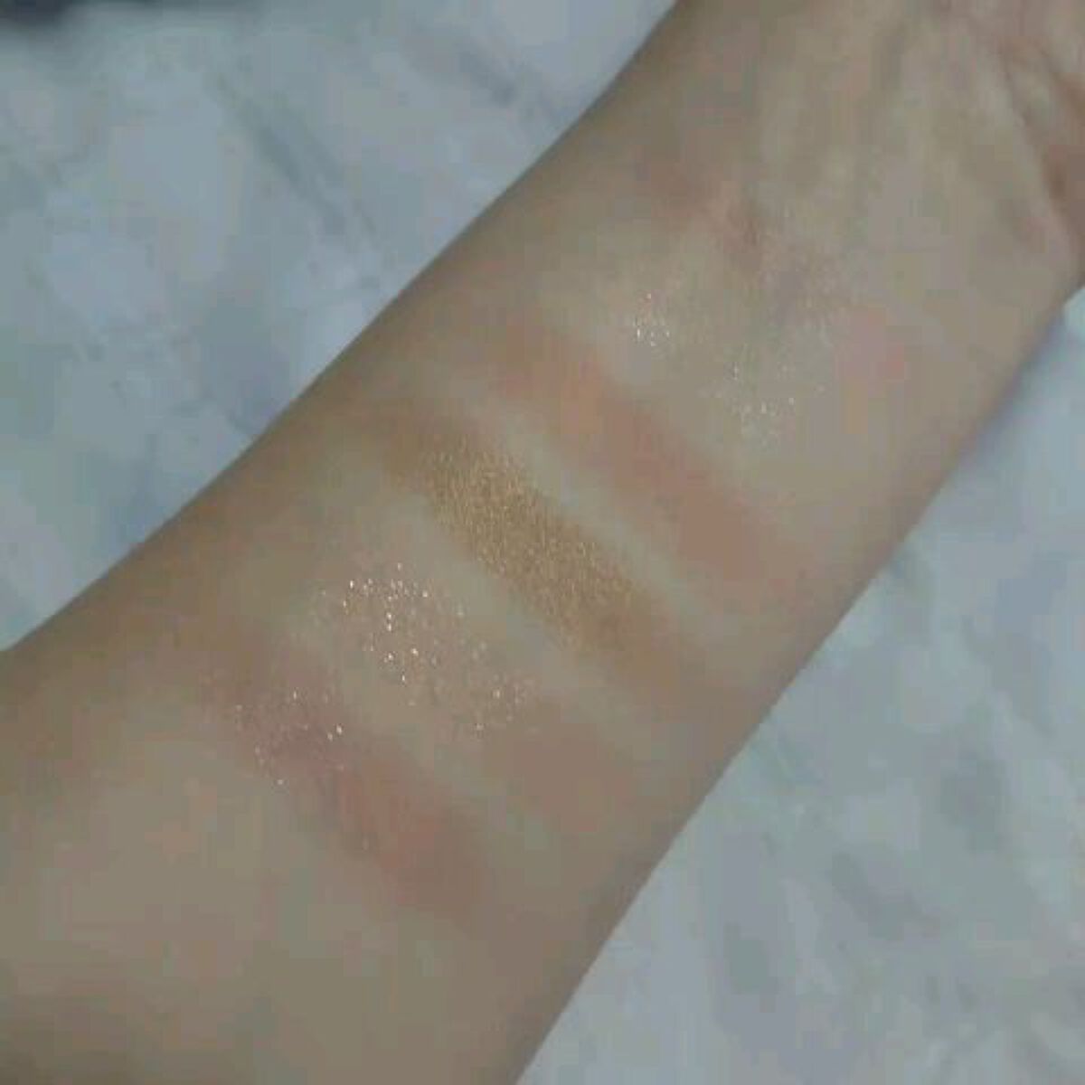 ベージュでこんな可愛くなれるんだと感動したラメ感と発色 肌に溶け込む分、どんな風に塗っても失敗しないし、自然に掘りが深い感じの目元になれる👍 ガラスパールのラメとほんのりコーラルがかったベージュで馴染みすぎず、抜け感のある雰囲気も出せて絶妙なオシャレ発色✨ ハイライトが偏光と記載があり、かなり発光します💡✨ 繊細なパールで目の下辺りとかは少し毛穴が目立つ感じもあり、マットのフェイスパウダーで調節しつつ使うとちょうど良くなりました🥰 とにかく粉がしっとりなめらかで、色の調節がしやすい❣️ 1色1色の面積もまぁまぁ大きいのでチークブラシでも取りやすく、顔全体に使えて便利🙆 日常使いしたいパレットです💕