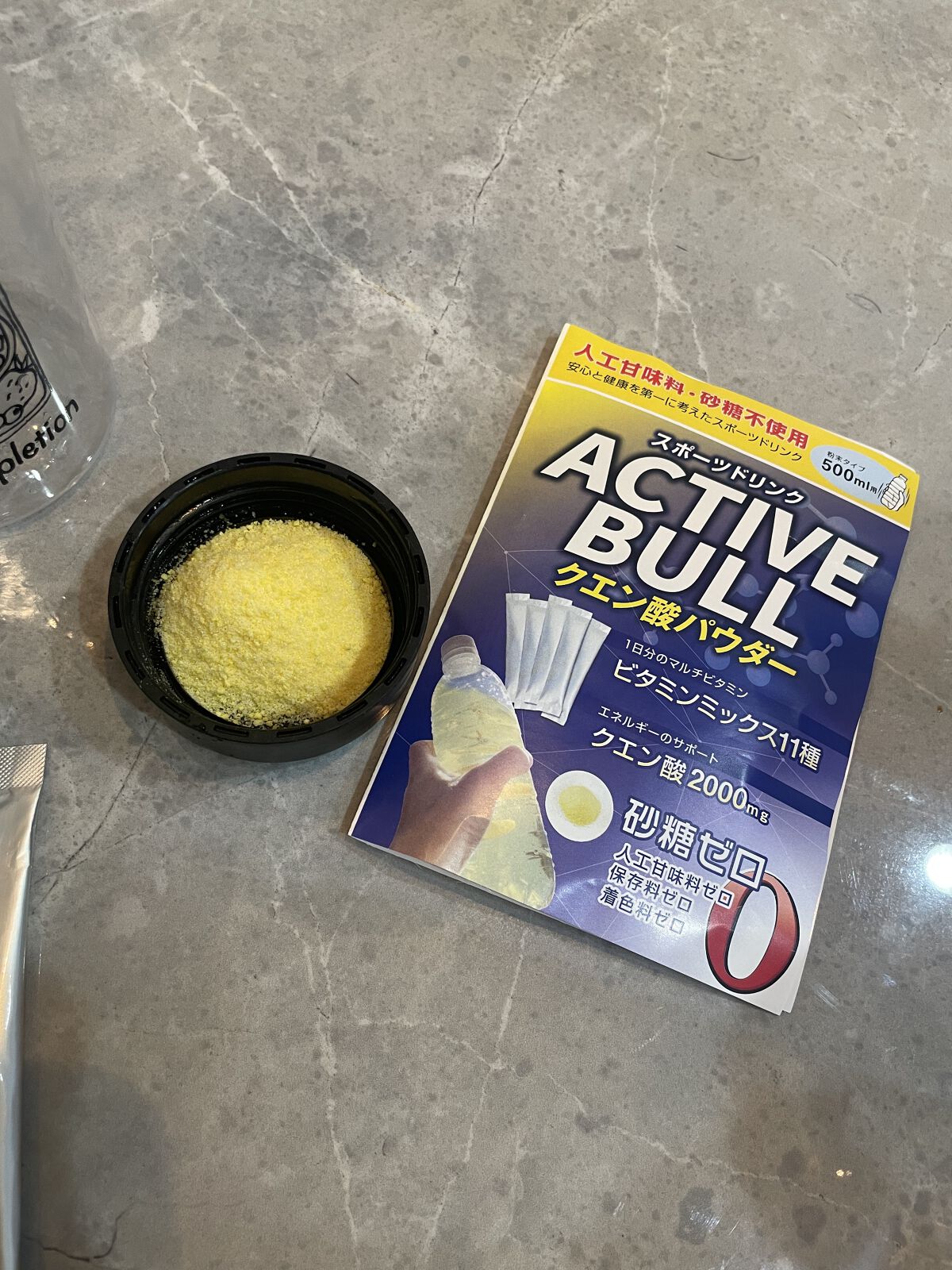 パウダーをお水に溶かして飲むタイプ、実は初めてだったんですが甘ったるくなくてスッキリしてたので、ゴクゴク飲めました😋 1回使い切りタイプも持ち運びに便利✨ 1包はお水500ml用なので、 外出先で購入したペットボトルのお水にもササッと入れれますね💛 スポーツドリンクとしても 日常生活のクエン酸・ビタミン摂取にもピッタリ🫶🏻