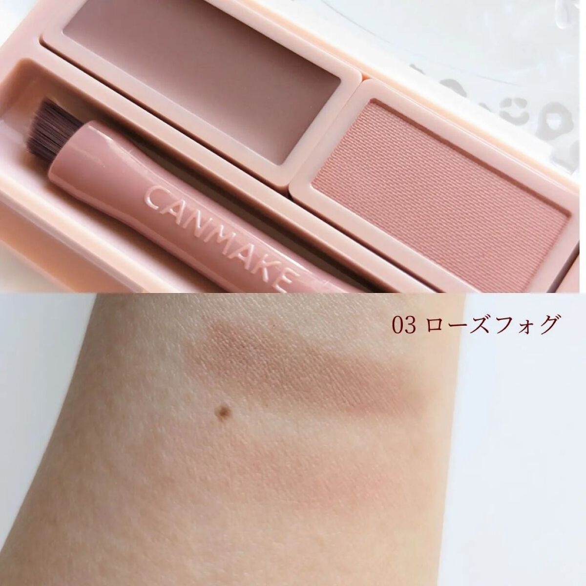 ワックスとパウダーの2つの質感・発色がセットされた キャンメイクのアイブロウ♡ 「04 クラウディモーヴ」はくすみっぽいニュアンスカラー。 ほんのり彩度を落とした秋メイクにピッタリの雰囲気に思った♡ ペンシルとブロウマスカラを重ねるとすんごく好みの仕上がり🥹