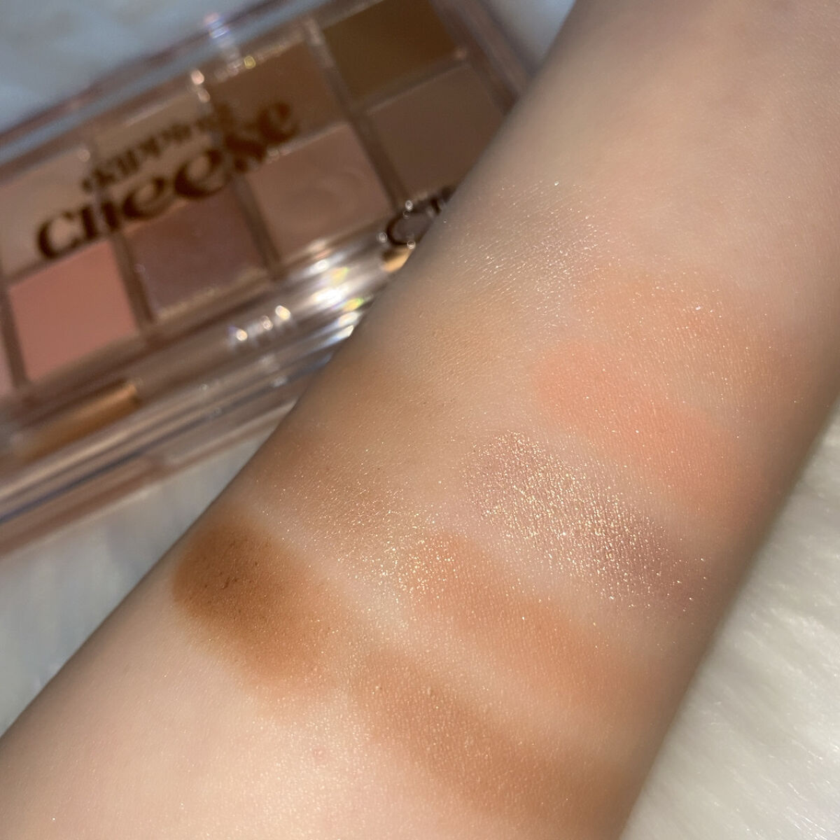 名前的にチーズが入ってるから ガッツリイエベ向けかと思いきや 意外にも黄み控えめで全然ブルベもいける…! この11番はかなりニュートラルな明るめピンクで イエベ春とブルベ夏またぐタイプにおすすめ! ラメもゴールド系からホワイトっぽいものまで ニュートラルな配色だから1stブルベでも👌🏻 このアイシャドウはQoo10公式で買ったよ! ぜひ皆さんもチェックしてみてね♡