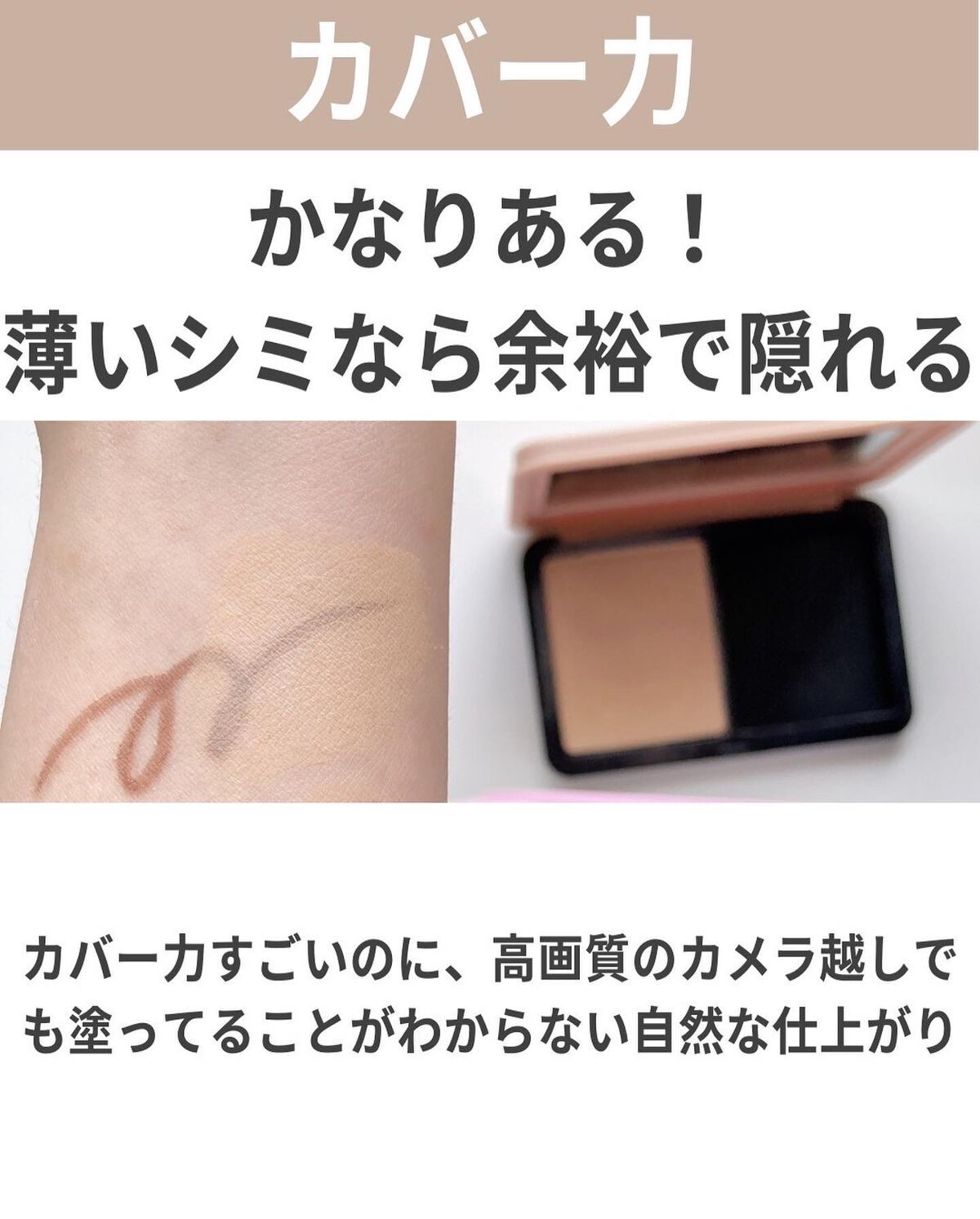 このパウダーファンデ、とにかくスゴい! パウダーファンデって言うと、パサつく・カバー力ないくせに厚塗り感ありありって思われがちだけど、これ全然そんなことない。 めっちゃつるん!とした仕上がり。時間が経ってもキレイ、っていうか時間が経ってからの方が皮脂と馴染んでキレイ。 付属のスポンジはロゴのある面がツルツルでハイカバー仕上げ、裏面はふわふわでナチュラル仕上げになる両面タイプ。