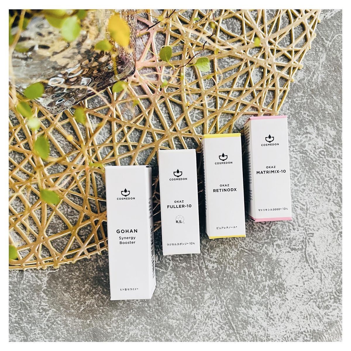 \自分好みのスキンケアを/ \カスタマイズできる!/ユニークな名前のコスメ「COSMEDON (コスメドン)」しかも、GOHAN(オールインワンゲルのベース)OKAZ(美容液)があって、混ぜて使うことで自分の肌悩みに合ったオールインワンゲルが...
