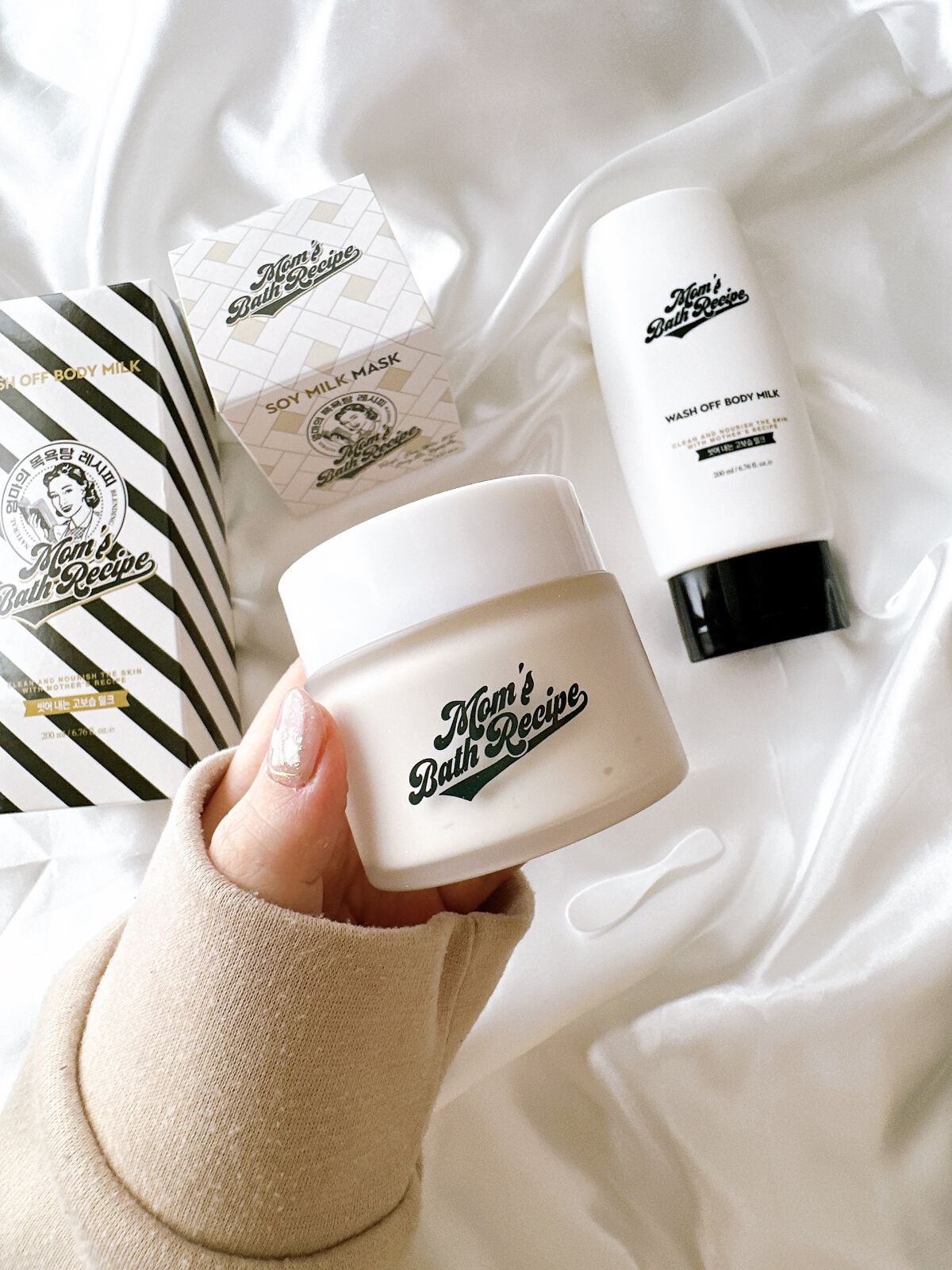 洗い流すタイプの珍しいボディローション!マムズバスレシピという韓国コスメブランドです。 出し口が下向きで置いておけるので量が少なくなっても中身がすぐ出せるのが便利です。 なによりお風呂あがりに何も塗らなくて良いので便利。